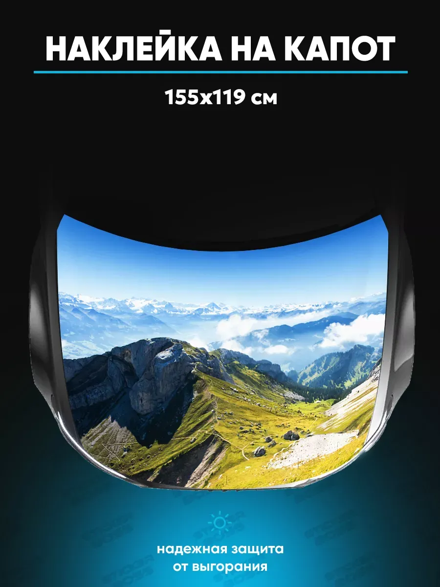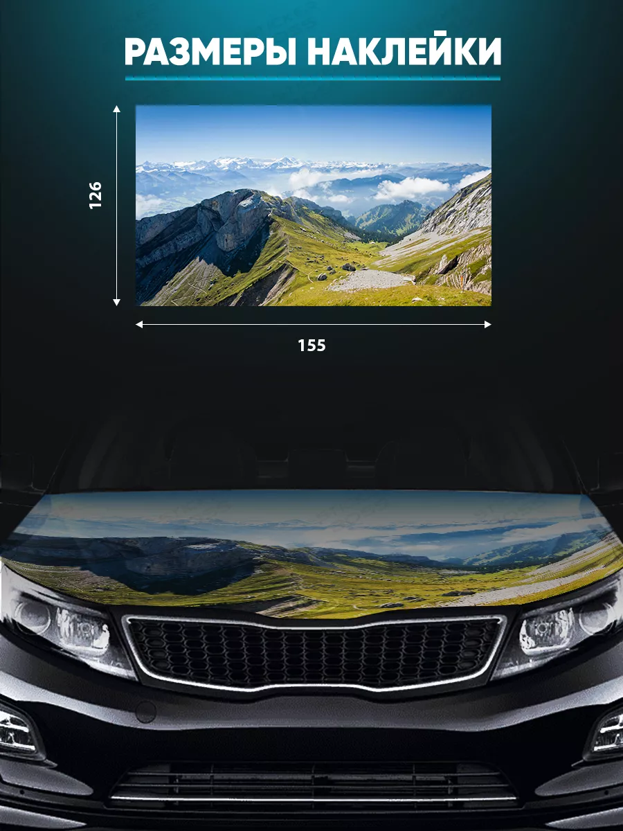Представляем большую наклейку на капот с изображением величественных горных вершин, которая станет идеальным акцентом для вашего автомобиля