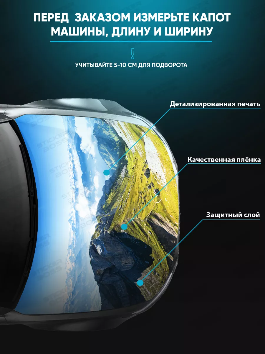Представляем большую наклейку на капот с изображением величественных горных вершин, которая станет идеальным акцентом для вашего автомобиля. Яркий автодекор с природным мотивами придаст транспортному средству вдохновляющий вид и подчеркнет вашу индивидуальность. Размер стикера составляет 155х119 см, что делает его подходящим для капотов большинства популярных машин, будь то седан, хэтчбек или универсал. Эта автонаклейка с шикарными пейзажами изготовлена из высококачественной самоклеящейся виниловой пленки ПВХ, что гарантирует долговечность и стойкость к внешним воздействиям. Она также имеет верхний слой ламинации, который защищает изображение от выцветания и механических повреждений. Товар упаковывается в специальную защитную тубу, что обеспечивает его сохранность во время доставки. Стикеры с горными вершинами добавят вашему транспортному средству уникальности и стиля, отражая вашу любовь к природе, а также станут отличным подарком на Новый год, день рождения, 23 февраля и другие праздники. Сделайте повседневную езду на машине ярче и выразительнее вместе с продукцией бренда Stickerboss, особенно для путешественников на авто!