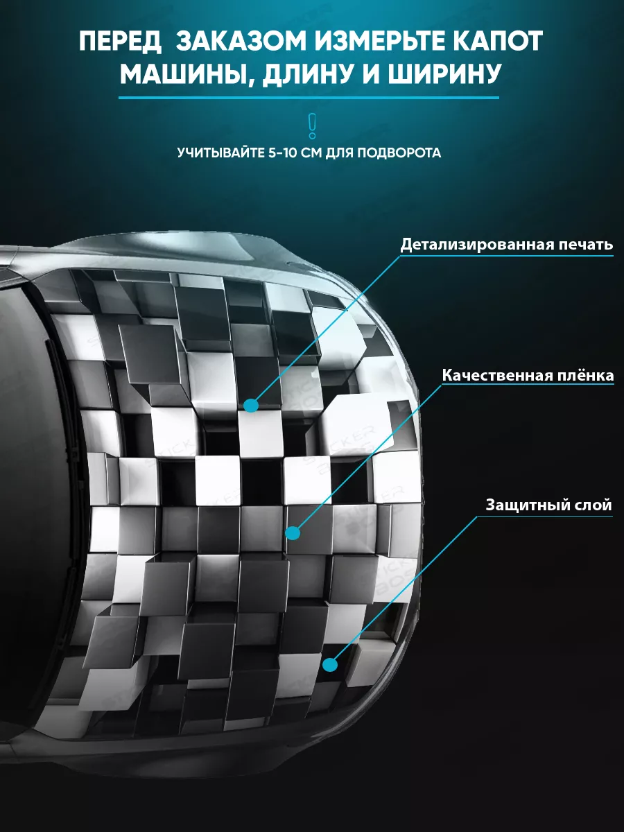 Предлагаем вашему вниманию большую декоративную наклейку на капот вашего авто. Размер стикера универсальный - 155х119 см, подойдет на капоты большинства популярных авто, будь то седан, хэтчбек или универсал. При необходимости можно подрезать лист под нужный размер. При изготовлении этих автонаклеек мы используем высококачественную самоклеящуюся виниловую пленку ПВХ, которая обеспечивает надежное приклеивание к поверхности, устойчива к любому виду моек и агрессивным погодным условиям, не боится пыли и влаги, не выгорает на солнце благодаря дополнительному верхнему слою ламинации. При желании, легко снимается, не оставляя следов. В наличии множество различных вариантов на любой вкус – в коллекции есть принты с надписями, героями известных кинофильмов, динамичные изображения львов, тигров, волков, медведей, леопардов, собак, лошадей, и прочих животных, принты в стиле аниме, флаги России, флаги известных футбольных клубов, горы, города, живописные пейзажи и многое другое. Наклейка позволяет украсить автомобиль и добавить ему стиля и индивидуальности, декорировать под ваши индивидуальные взгляды на дизайн машины. Товар упаковывается в специальную защитную тубу, что позволяет обеспечить его сохранность во время доставки и порадовать наших покупателей яркими красками и высоким качеством наших стикеров. Они так же станут отличным подарком вашим близким на новый год, день рождения, женщинам на 8 марта и мужчинам на 23 февраля. Сделайте повседневную езду на машине ярче, вместе с продукцией бренда Stickerboss!