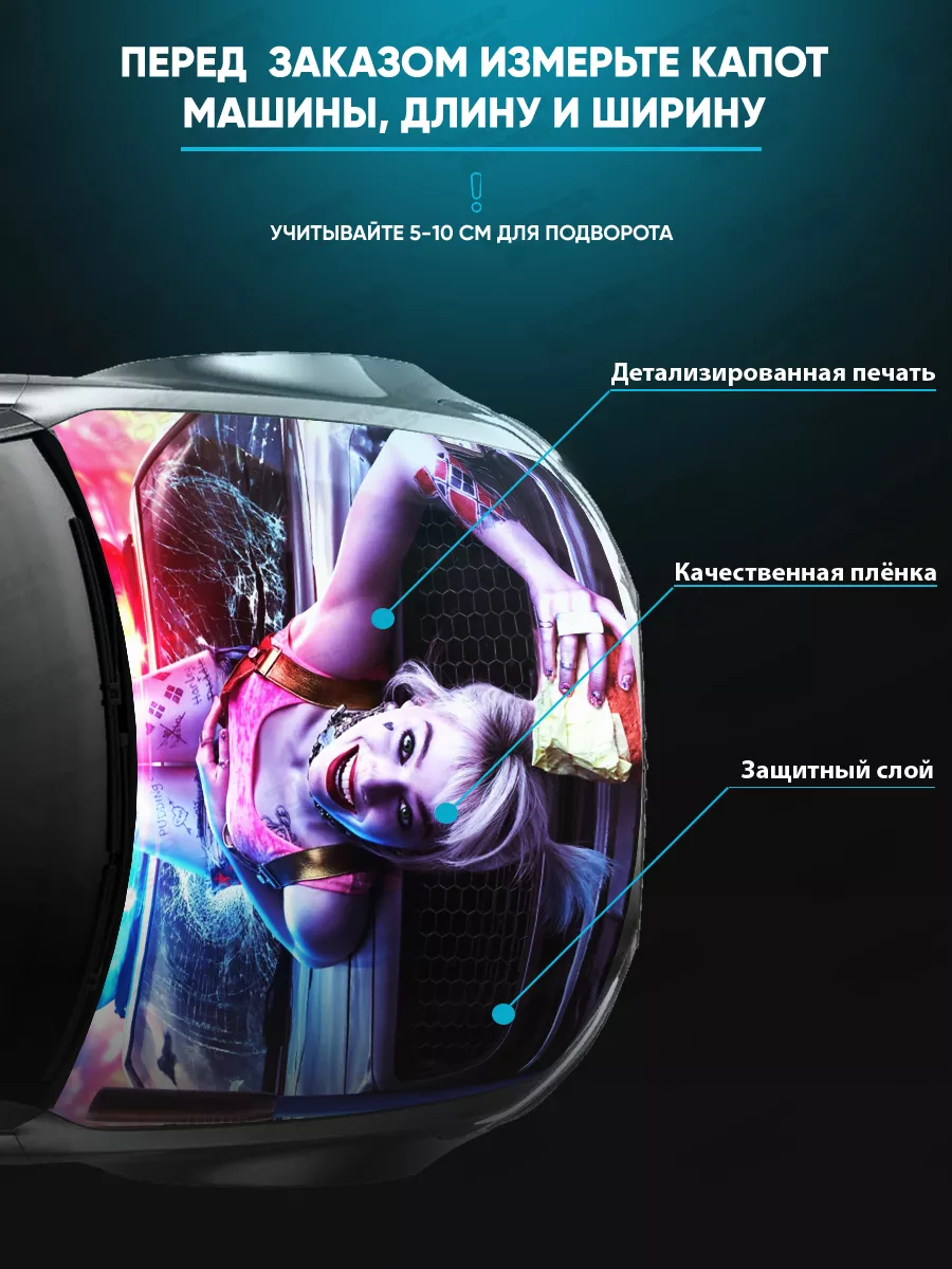 Предлагаем вашему вниманию большую декоративную наклейку на капот вашего авто. Размер стикера универсальный - 155х119 см, подойдет на капоты большинства популярных авто, будь то седан, хэтчбек или универсал. При необходимости можно подрезать лист под нужный размер. При изготовлении этих автонаклеек мы используем высококачественную самоклеящуюся виниловую пленку ПВХ, которая обеспечивает надежное приклеивание к поверхности, устойчива к любому виду моек и агрессивным погодным условиям, не боится пыли и влаги, не выгорает на солнце благодаря дополнительному верхнему слою ламинации. При желании, легко снимается, не оставляя следов. В наличии множество различных вариантов на любой вкус – в коллекции есть принты с надписями, героями известных кинофильмов, динамичные изображения львов, тигров, волков, медведей, леопардов, собак, лошадей, и прочих животных, принты в стиле аниме, флаги России, флаги известных футбольных клубов, горы, города, живописные пейзажи и многое другое. Наклейка позволяет украсить автомобиль и добавить ему стиля и индивидуальности, декорировать под ваши индивидуальные взгляды на дизайн машины. Товар упаковывается в специальную защитную тубу, что позволяет обеспечить его сохранность во время доставки и порадовать наших покупателей яркими красками и высоким качеством наших стикеров. Они так же станут отличным подарком вашим близким на новый год, день рождения, женщинам на 8 марта и мужчинам на 23 февраля. Сделайте повседневную езду на машине ярче, вместе с продукцией бренда Stickerboss!