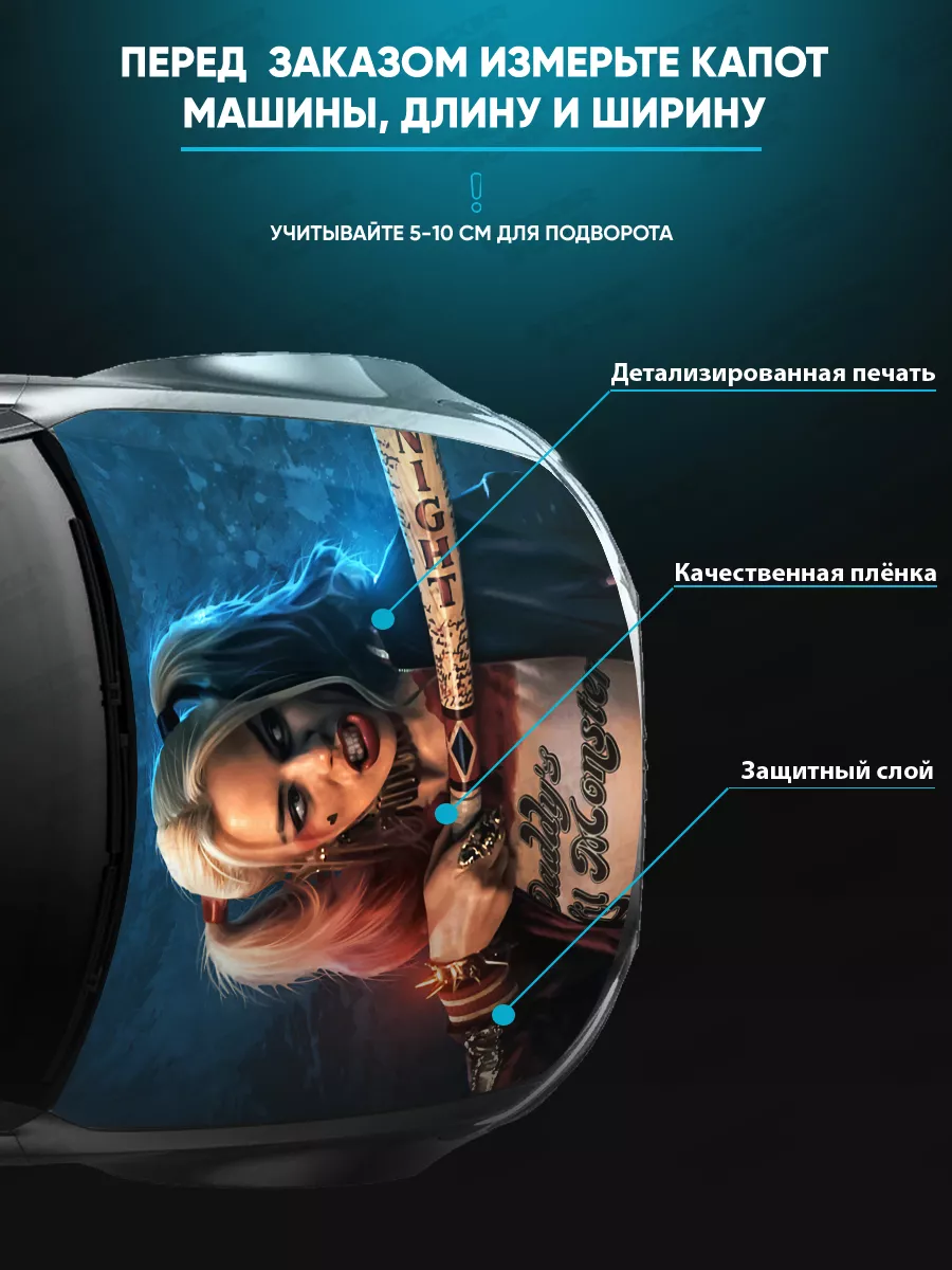 Предлагаем вашему вниманию большую декоративную наклейку на капот вашего авто. Размер стикера универсальный - 155х119 см, подойдет на капоты большинства популярных авто, будь то седан, хэтчбек или универсал. При необходимости можно подрезать лист под нужный размер. При изготовлении этих автонаклеек мы используем высококачественную самоклеящуюся виниловую пленку ПВХ, которая обеспечивает надежное приклеивание к поверхности, устойчива к любому виду моек и агрессивным погодным условиям, не боится пыли и влаги, не выгорает на солнце благодаря дополнительному верхнему слою ламинации. При желании, легко снимается, не оставляя следов. В наличии множество различных вариантов на любой вкус – в коллекции есть принты с надписями, героями известных кинофильмов, динамичные изображения львов, тигров, волков, медведей, леопардов, собак, лошадей, и прочих животных, принты в стиле аниме, флаги России, флаги известных футбольных клубов, горы, города, живописные пейзажи и многое другое. Наклейка позволяет украсить автомобиль и добавить ему стиля и индивидуальности, декорировать под ваши индивидуальные взгляды на дизайн машины. Товар упаковывается в специальную защитную тубу, что позволяет обеспечить его сохранность во время доставки и порадовать наших покупателей яркими красками и высоким качеством наших стикеров. Они так же станут отличным подарком вашим близким на новый год, день рождения, женщинам на 8 марта и мужчинам на 23 февраля. Сделайте повседневную езду на машине ярче, вместе с продукцией бренда Stickerboss!