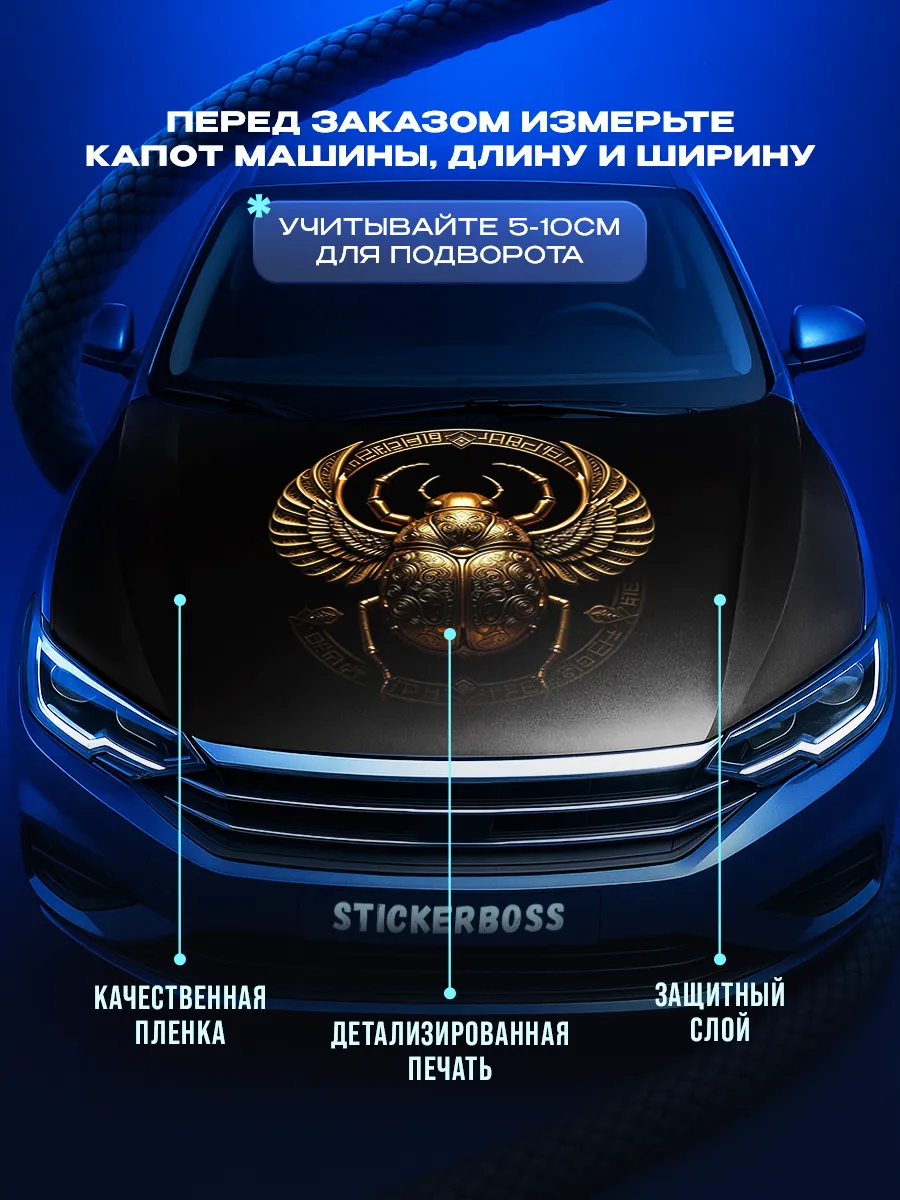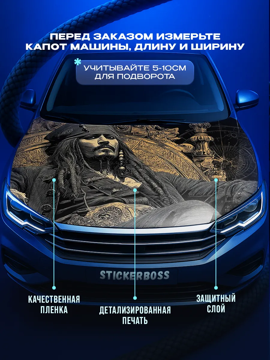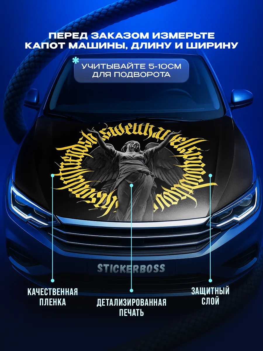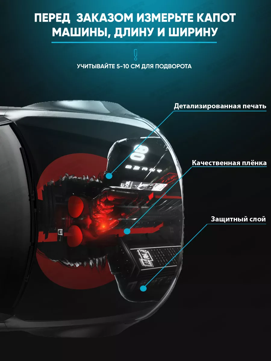 Предлагаем вашему вниманию большую декоративную наклейку на капот вашего авто. Размер стикера универсальный - 155х119 см, подойдет на капоты большинства популярных авто, будь то седан, хэтчбек или универсал. При необходимости можно подрезать лист под нужный размер. При изготовлении этих автонаклеек мы используем высококачественную самоклеящуюся виниловую пленку ПВХ, которая обеспечивает надежное приклеивание к поверхности, устойчива к любому виду моек и агрессивным погодным условиям, не боится пыли и влаги, не выгорает на солнце благодаря дополнительному верхнему слою ламинации. При желании, легко снимается, не оставляя следов. В наличии множество различных вариантов на любой вкус – в коллекции есть принты с надписями, героями известных кинофильмов, динамичные изображения львов, тигров, волков, медведей, леопардов, собак, лошадей, и прочих животных, принты в стиле аниме, флаги России, флаги известных футбольных клубов, горы, города, живописные пейзажи и многое другое. Наклейка позволяет украсить автомобиль и добавить ему стиля и индивидуальности, декорировать под ваши индивидуальные взгляды на дизайн машины. Товар упаковывается в специальную защитную тубу, что позволяет обеспечить его сохранность во время доставки и порадовать наших покупателей яркими красками и высоким качеством наших стикеров. Они так же станут отличным подарком вашим близким на новый год, день рождения, женщинам на 8 марта и мужчинам на 23 февраля. Сделайте повседневную езду на машине ярче, вместе с продукцией бренда Stickerboss!