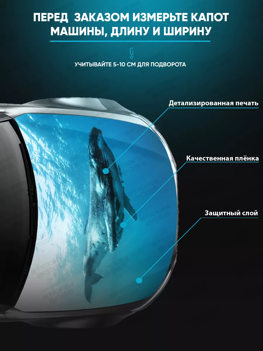Предлагаем вашему вниманию большую декоративную наклейку на капот вашего авто. Размер стикера универсальный - 155х119 см, подойдет на капоты большинства популярных авто, будь то седан, хэтчбек или универсал. При необходимости можно подрезать лист под нужный размер. При изготовлении этих автонаклеек мы используем высококачественную самоклеящуюся виниловую пленку ПВХ, которая обеспечивает надежное приклеивание к поверхности, устойчива к любому виду моек и агрессивным погодным условиям, не боится пыли и влаги, не выгорает на солнце благодаря дополнительному верхнему слою ламинации. При желании, легко снимается, не оставляя следов. В наличии множество различных вариантов на любой вкус – в коллекции есть принты с надписями, героями известных кинофильмов, динамичные изображения львов, тигров, волков, медведей, леопардов, собак, лошадей, и прочих животных, принты в стиле аниме, флаги России, флаги известных футбольных клубов, горы, города, живописные пейзажи и многое другое. Наклейка позволяет украсить автомобиль и добавить ему стиля и индивидуальности, декорировать под ваши индивидуальные взгляды на дизайн машины. Товар упаковывается в специальную защитную тубу, что позволяет обеспечить его сохранность во время доставки и порадовать наших покупателей яркими красками и высоким качеством наших стикеров. Они так же станут отличным подарком вашим близким на новый год, день рождения, женщинам на 8 марта и мужчинам на 23 февраля. Сделайте повседневную езду на машине ярче, вместе с продукцией бренда Stickerboss!