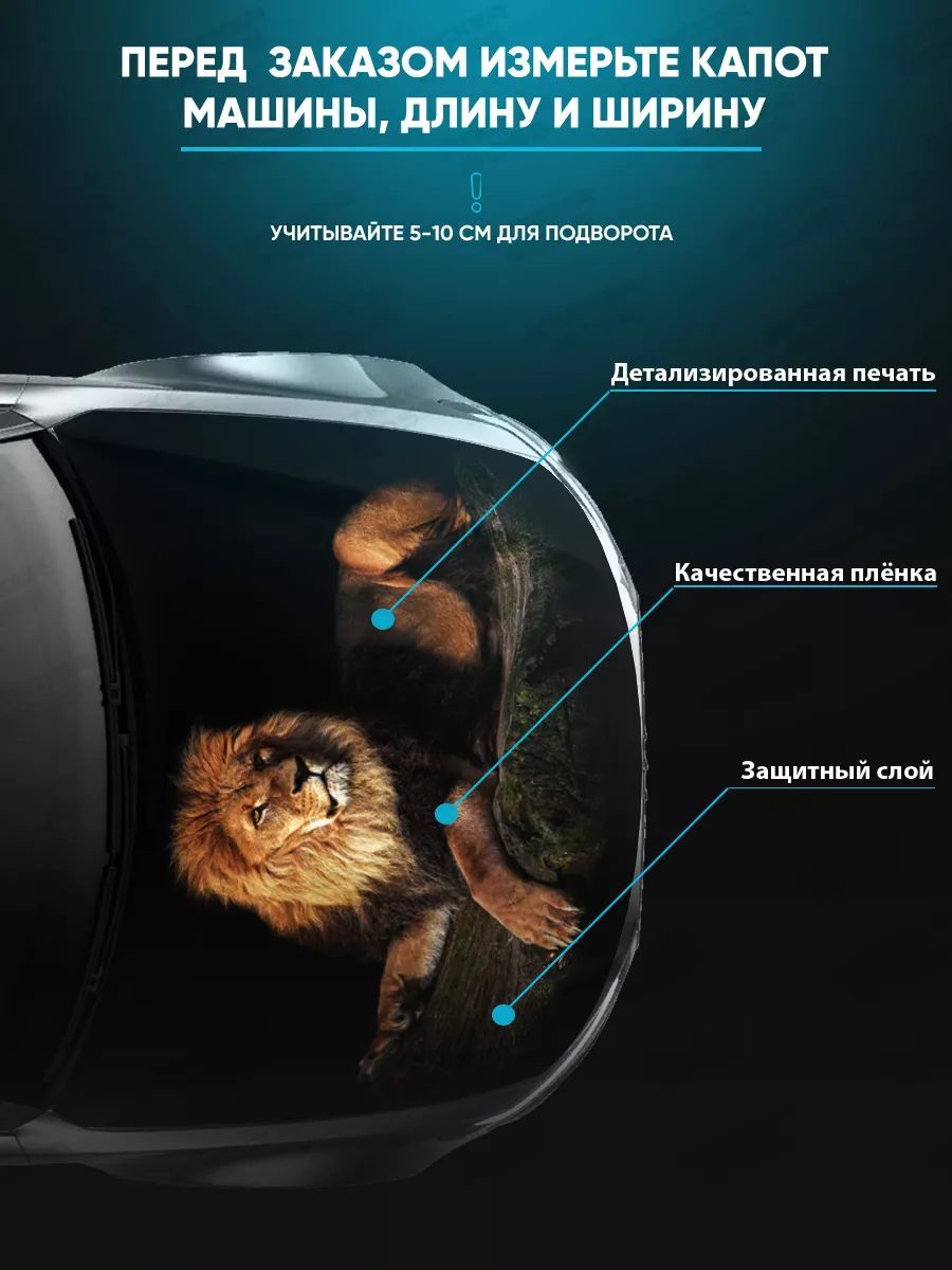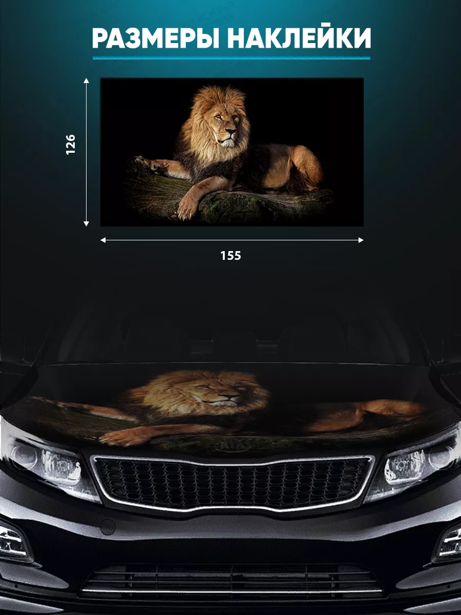 Предлагаем вашему вниманию большую декоративную наклейку на капот вашего авто. Размер стикера универсальный - 155х119 см, подойдет на капоты большинства популярных авто, будь то седан, хэтчбек или универсал. При необходимости можно подрезать лист под нужный размер. При изготовлении этих автонаклеек мы используем высококачественную самоклеящуюся виниловую пленку ПВХ, которая обеспечивает надежное приклеивание к поверхности, устойчива к любому виду моек и агрессивным погодным условиям, не боится пыли и влаги, не выгорает на солнце благодаря дополнительному верхнему слою ламинации. При желании, легко снимается, не оставляя следов. В наличии множество различных вариантов на любой вкус – в коллекции есть принты с надписями, героями известных кинофильмов, динамичные изображения львов, тигров, волков, медведей, леопардов, собак, лошадей, и прочих животных, принты в стиле аниме, флаги России, флаги известных футбольных клубов, горы, города, живописные пейзажи и многое другое. Наклейка позволяет украсить автомобиль и добавить ему стиля и индивидуальности, декорировать под ваши индивидуальные взгляды на дизайн машины. Товар упаковывается в специальную защитную тубу, что позволяет обеспечить его сохранность во время доставки и порадовать наших покупателей яркими красками и высоким качеством наших стикеров. Они так же станут отличным подарком вашим близким на новый год, день рождения, женщинам на 8 марта и мужчинам на 23 февраля. Сделайте повседневную езду на машине ярче, вместе с продукцией бренда Stickerboss!