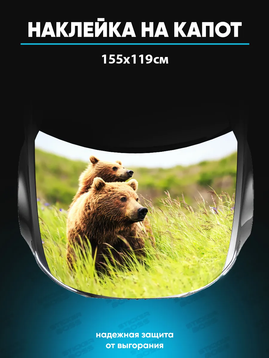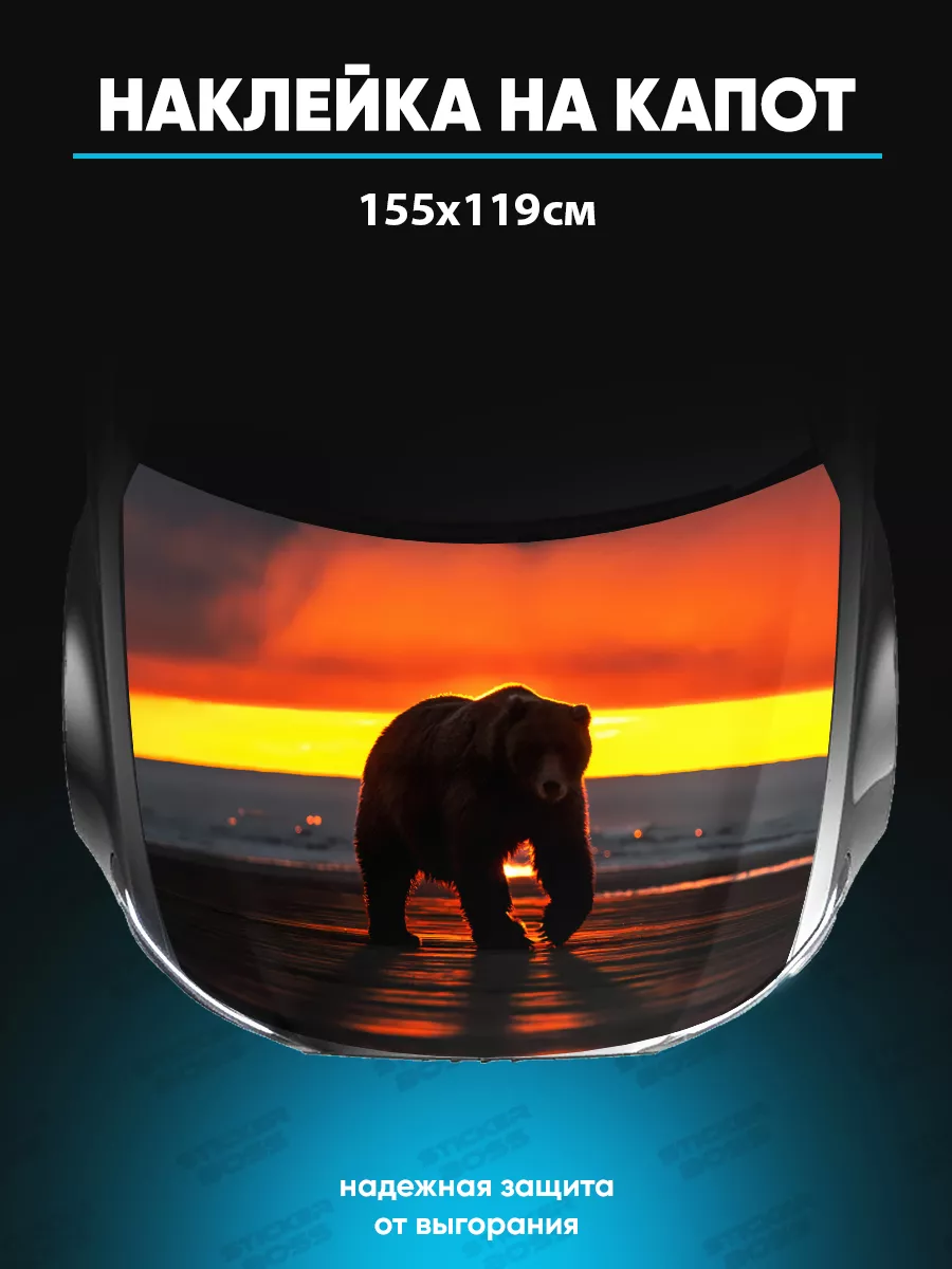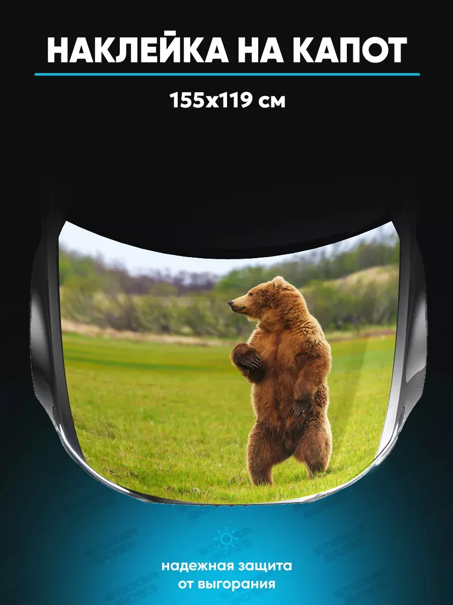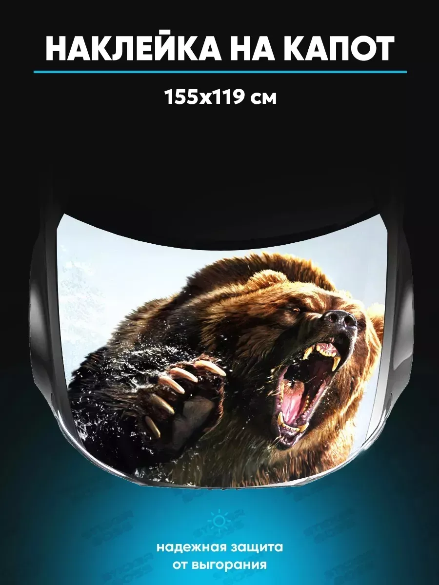 Представляем большую наклейку на капот авто с изображением бурого медведя, которая станет идеальным акцентом для вашего автомобиля