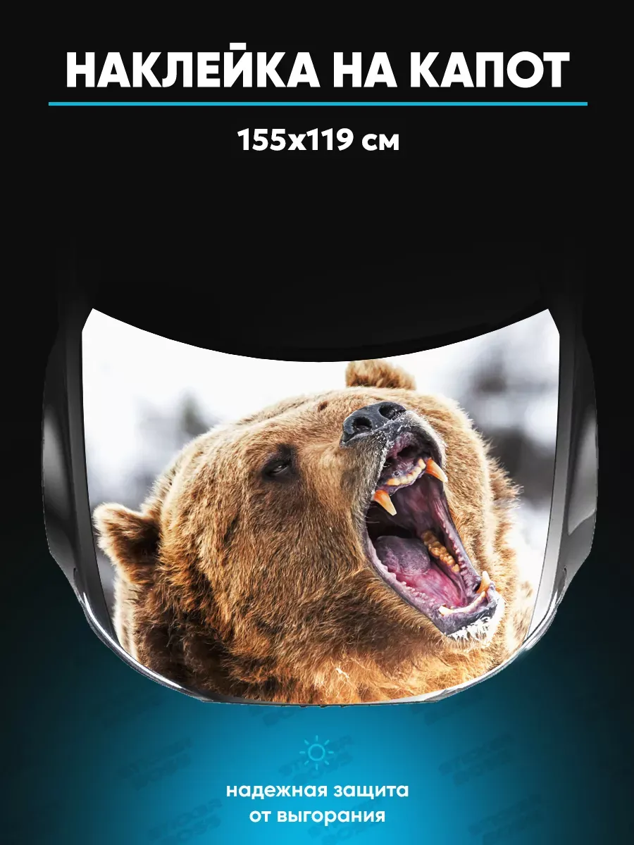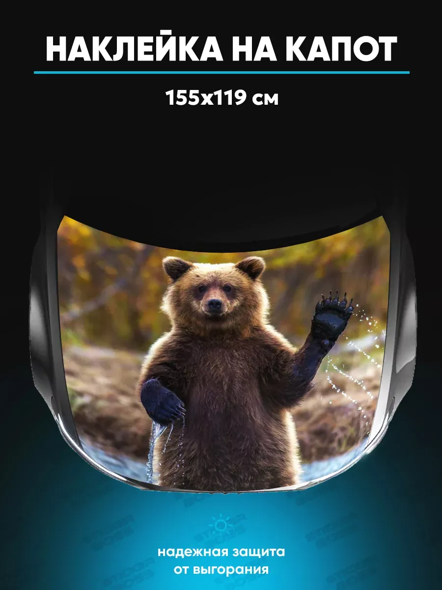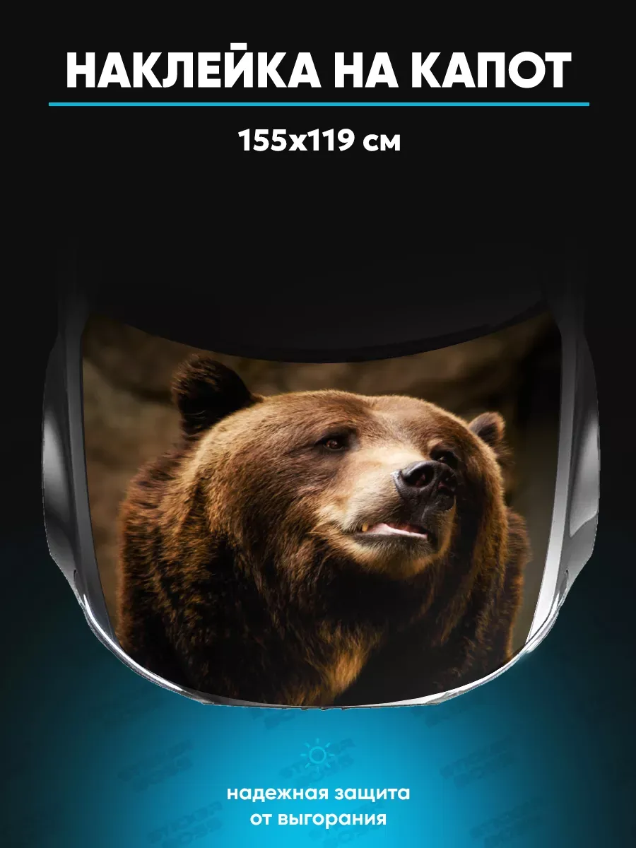 Представляем большую наклейку на капот авто с изображением бурого медведя, которая станет идеальным акцентом для вашего автомобиля