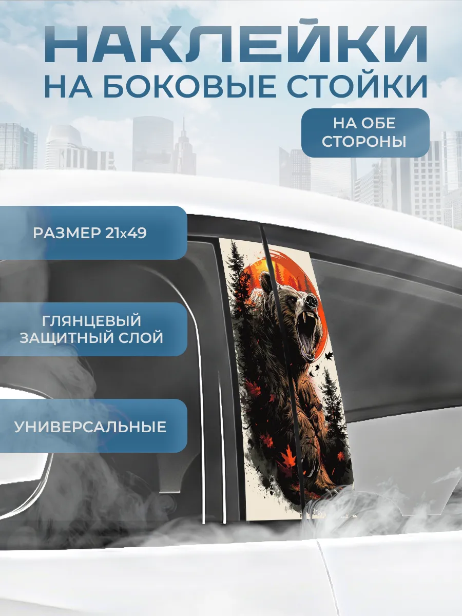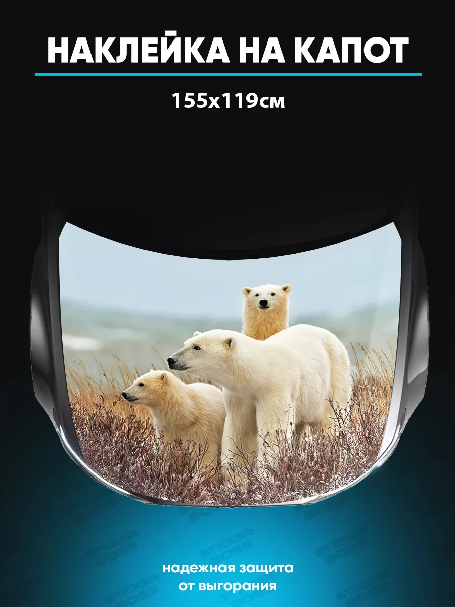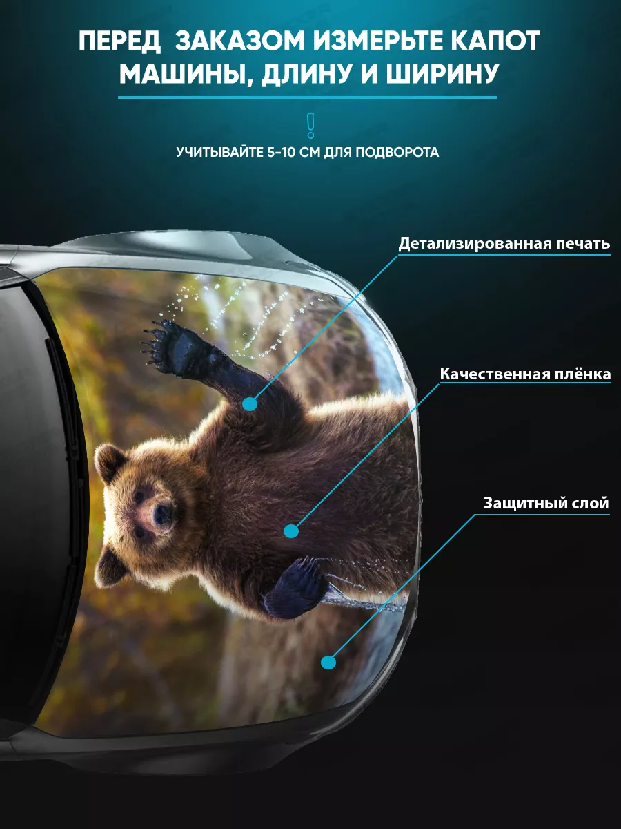 Представляем большую наклейку на капот авто с изображением бурого медведя, которая станет идеальным акцентом для вашего автомобиля