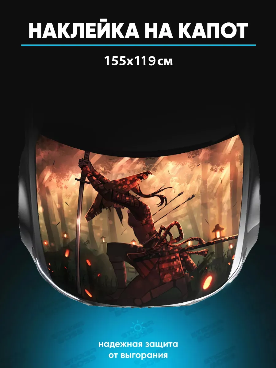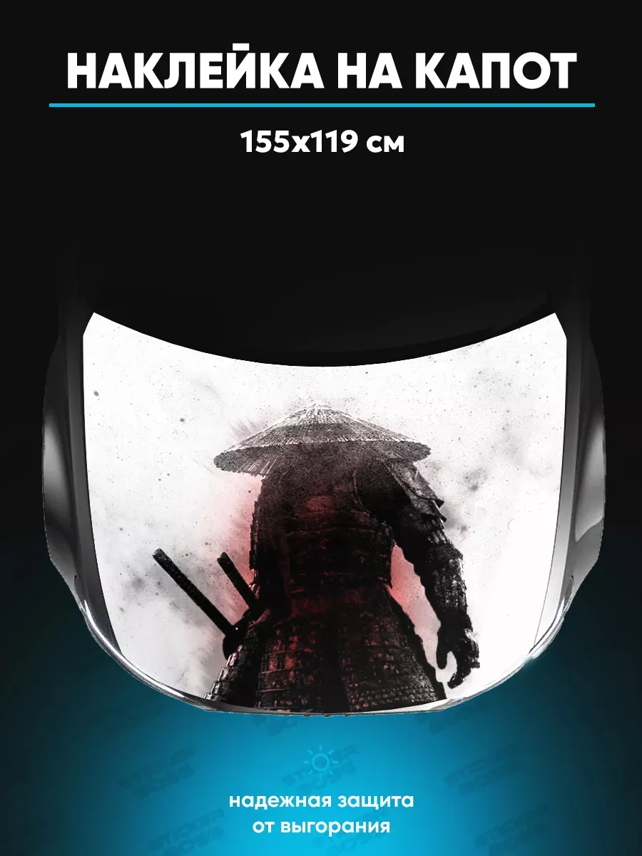 Представляем большую наклейку на капот с изображением самураев, которая станет идеальным акцентом для вашего автомобиля