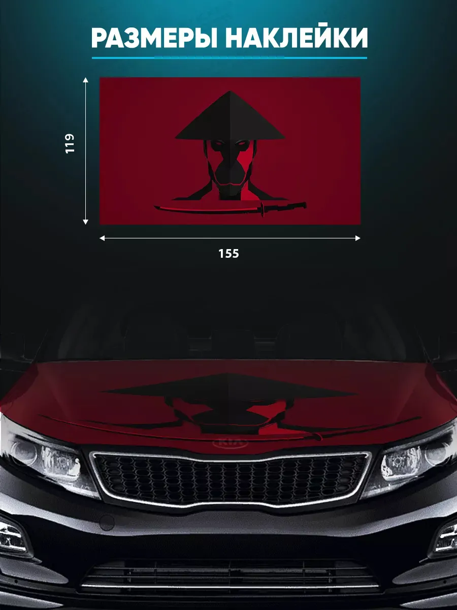 Представляем большую наклейку на капот с изображением самураев, которая станет идеальным акцентом для вашего автомобиля. Размер стикера универсальный и составляет 155х119 см, что делает его подходящим для капотов большинства популярных автомобилей, будь то седан, хэтчбек или универсал. Эта автонаклейка выполнена в японском стиле и изготовлена из высококачественной самоклеящейся виниловой пленки ПВХ, что гарантирует долговечность и стойкость к внешним воздействиям. Она также имеет верхний слой ламинации, который защищает изображение от выцветания и механических повреждений. Товар упаковывается в специальную защитную тубу, что обеспечивает его сохранность во время доставки и радует наших покупателей яркими красками и высоким качеством наших стикеров. На наклейке изображены воины, поэтому она прекрасно подойдет для всех, кто увлекается боевыми искусствами и хочет выразить свою индивидуальность. Изображения самураев с мечами добавят вашему транспортному средству динамичный стиль, а также станут отличным подарком на Новый год, день рождения, 23 февраля и другие праздники. Сделайте каждую поездку на машине ярче и выразительнее вместе с продукцией бренда Stickerboss!