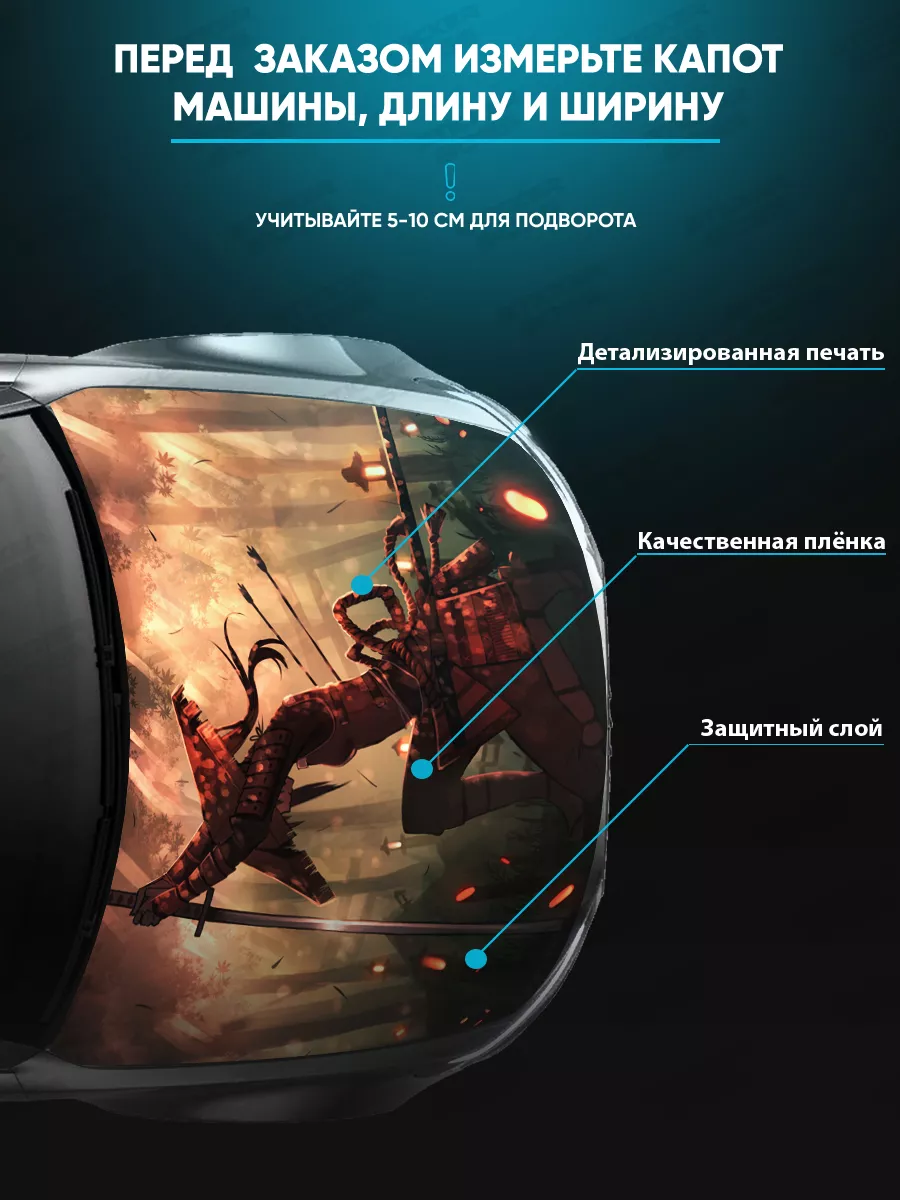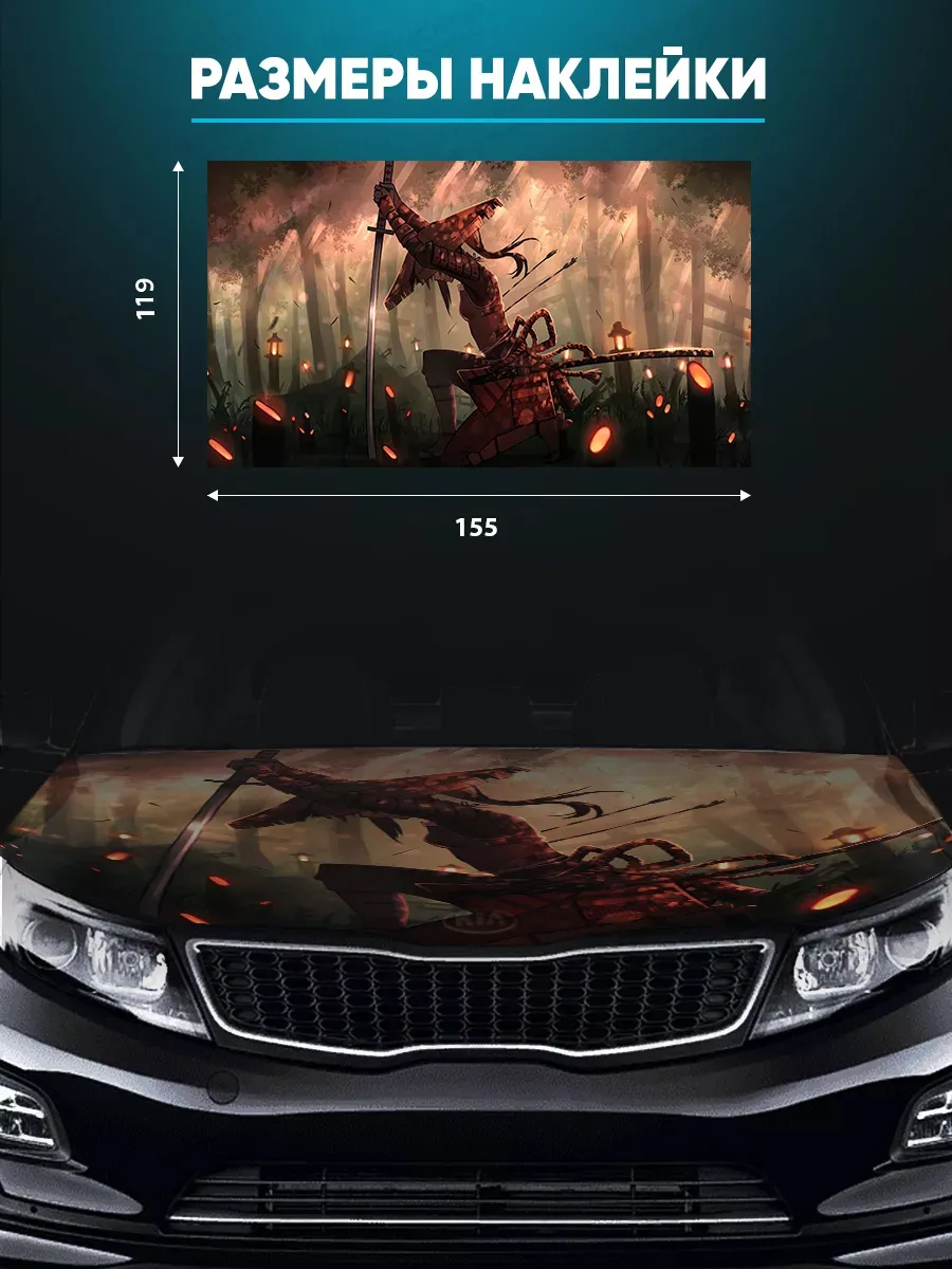Представляем большую наклейку на капот с изображением самураев, которая станет идеальным акцентом для вашего автомобиля