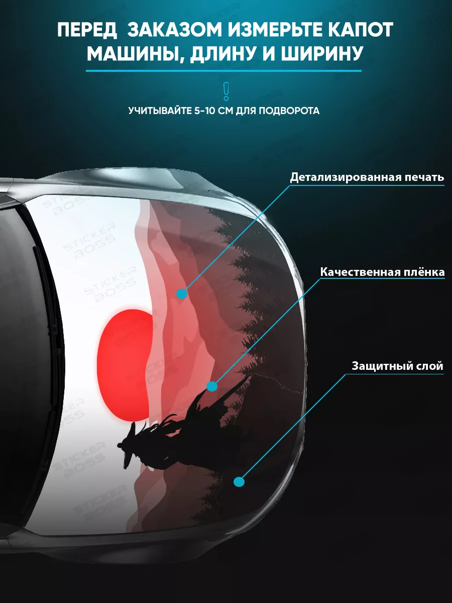 Представляем большую наклейку на капот с изображением самураев, которая станет идеальным акцентом для вашего автомобиля. Размер стикера универсальный и составляет 155х119 см, что делает его подходящим для капотов большинства популярных автомобилей, будь то седан, хэтчбек или универсал. Эта автонаклейка выполнена в японском стиле и изготовлена из высококачественной самоклеящейся виниловой пленки ПВХ, что гарантирует долговечность и стойкость к внешним воздействиям. Она также имеет верхний слой ламинации, который защищает изображение от выцветания и механических повреждений. Товар упаковывается в специальную защитную тубу, что обеспечивает его сохранность во время доставки и радует наших покупателей яркими красками и высоким качеством наших стикеров. На наклейке изображены воины, поэтому она прекрасно подойдет для всех, кто увлекается боевыми искусствами и хочет выразить свою индивидуальность. Изображения самураев с мечами добавят вашему транспортному средству динамичный стиль, а также станут отличным подарком на Новый год, день рождения, 23 февраля и другие праздники. Сделайте каждую поездку на машине ярче и выразительнее вместе с продукцией бренда Stickerboss!