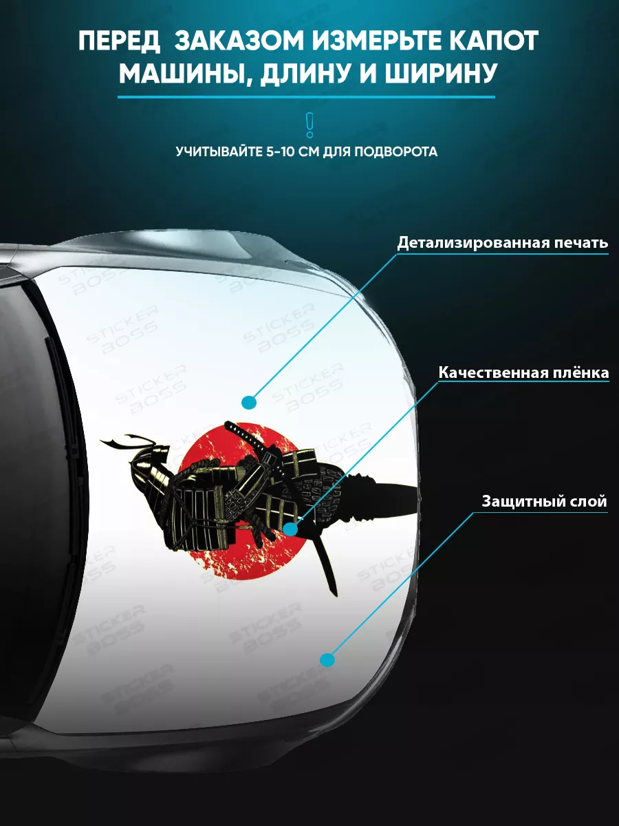 Предлагаем вашему вниманию большую декоративную наклейку на капот вашего авто. Размер стикера универсальный - 155х119 см, подойдет на капоты большинства популярных авто, будь то седан, хэтчбек или универсал. При необходимости можно подрезать лист под нужный размер. При изготовлении этих автонаклеек мы используем высококачественную самоклеящуюся виниловую пленку ПВХ, которая обеспечивает надежное приклеивание к поверхности, устойчива к любому виду моек и агрессивным погодным условиям, не боится пыли и влаги, не выгорает на солнце благодаря дополнительному верхнему слою ламинации. При желании, легко снимается, не оставляя следов. В наличии множество различных вариантов на любой вкус – в коллекции есть принты с надписями, героями известных кинофильмов, динамичные изображения львов, тигров, волков, медведей, леопардов, собак, лошадей, и прочих животных, принты в стиле аниме, флаги России, флаги известных футбольных клубов, горы, города, живописные пейзажи и многое другое. Наклейка позволяет украсить автомобиль и добавить ему стиля и индивидуальности, декорировать под ваши индивидуальные взгляды на дизайн машины. Товар упаковывается в специальную защитную тубу, что позволяет обеспечить его сохранность во время доставки и порадовать наших покупателей яркими красками и высоким качеством наших стикеров. Они так же станут отличным подарком вашим близким на новый год, день рождения, женщинам на 8 марта и мужчинам на 23 февраля. Сделайте повседневную езду на машине ярче, вместе с продукцией бренда Stickerboss!