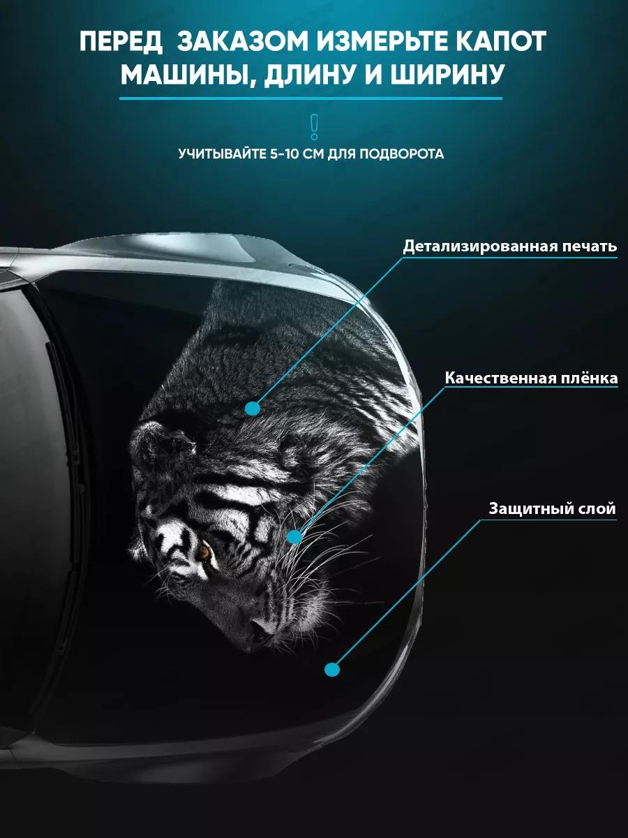 Предлагаем вашему вниманию большую декоративную наклейку на капот вашего авто. Размер стикера универсальный - 155х119 см, подойдет на капоты большинства популярных авто, будь то седан, хэтчбек или универсал. При необходимости можно подрезать лист под нужный размер. При изготовлении этих автонаклеек мы используем высококачественную самоклеящуюся виниловую пленку ПВХ, которая обеспечивает надежное приклеивание к поверхности, устойчива к любому виду моек и агрессивным погодным условиям, не боится пыли и влаги, не выгорает на солнце благодаря дополнительному верхнему слою ламинации. При желании, легко снимается, не оставляя следов. В наличии множество различных вариантов на любой вкус – в коллекции есть принты с надписями, героями известных кинофильмов, динамичные изображения львов, тигров, волков, медведей, леопардов, собак, лошадей, и прочих животных, принты в стиле аниме, флаги России, флаги известных футбольных клубов, горы, города, живописные пейзажи и многое другое. Наклейка позволяет украсить автомобиль и добавить ему стиля и индивидуальности, декорировать под ваши индивидуальные взгляды на дизайн машины. Товар упаковывается в специальную защитную тубу, что позволяет обеспечить его сохранность во время доставки и порадовать наших покупателей яркими красками и высоким качеством наших стикеров. Они так же станут отличным подарком вашим близким на новый год, день рождения, женщинам на 8 марта и мужчинам на 23 февраля. Сделайте повседневную езду на машине ярче, вместе с продукцией бренда Stickerboss!