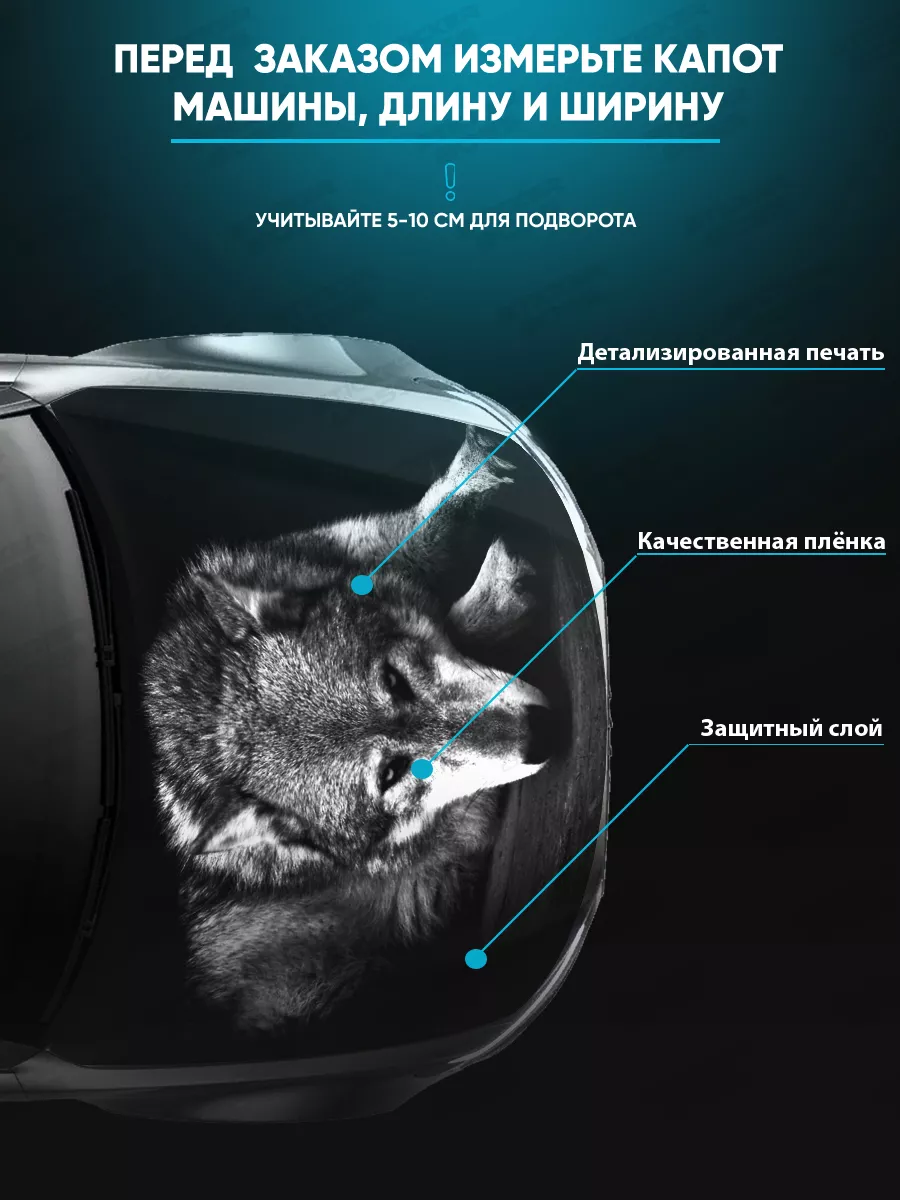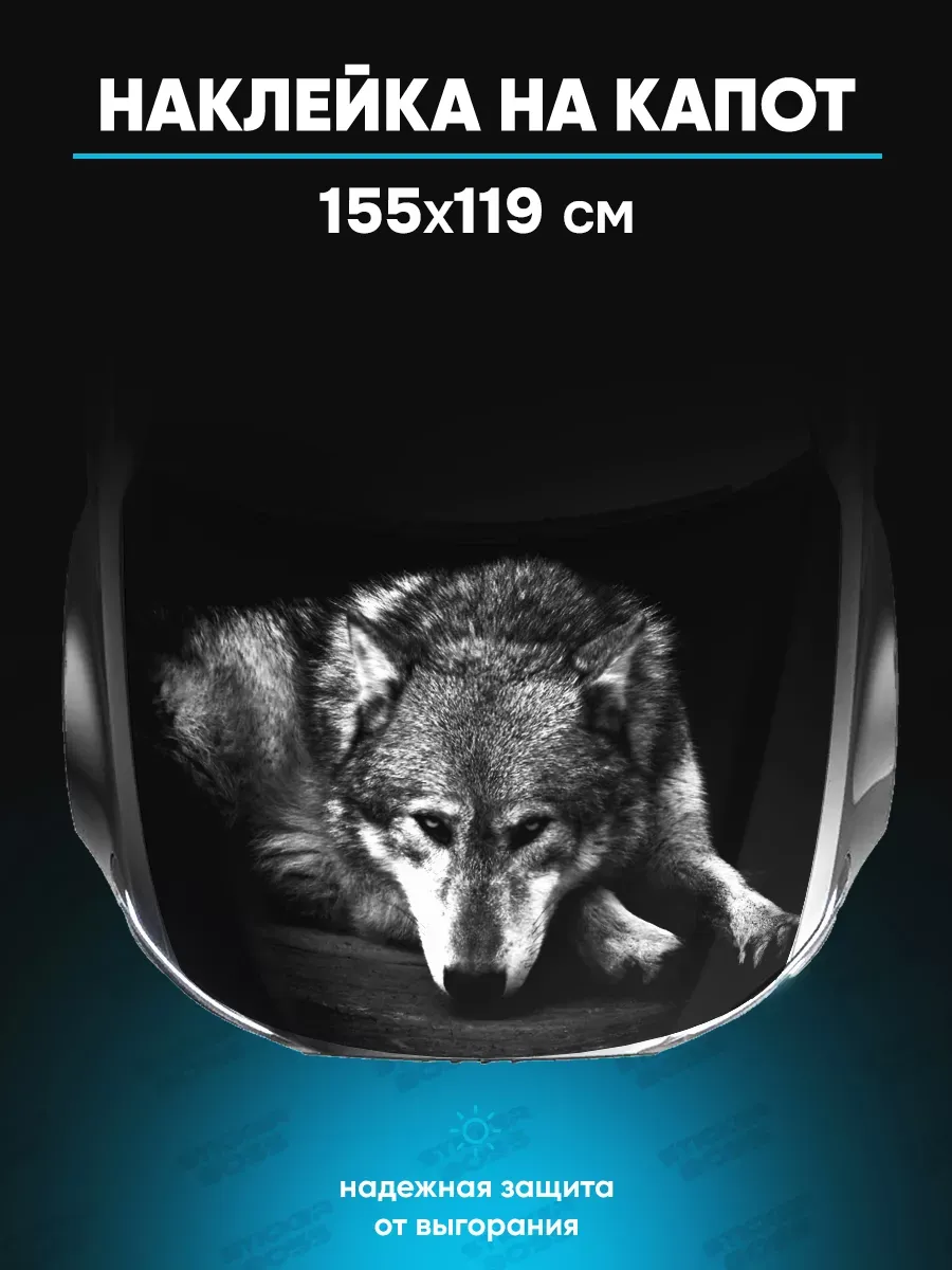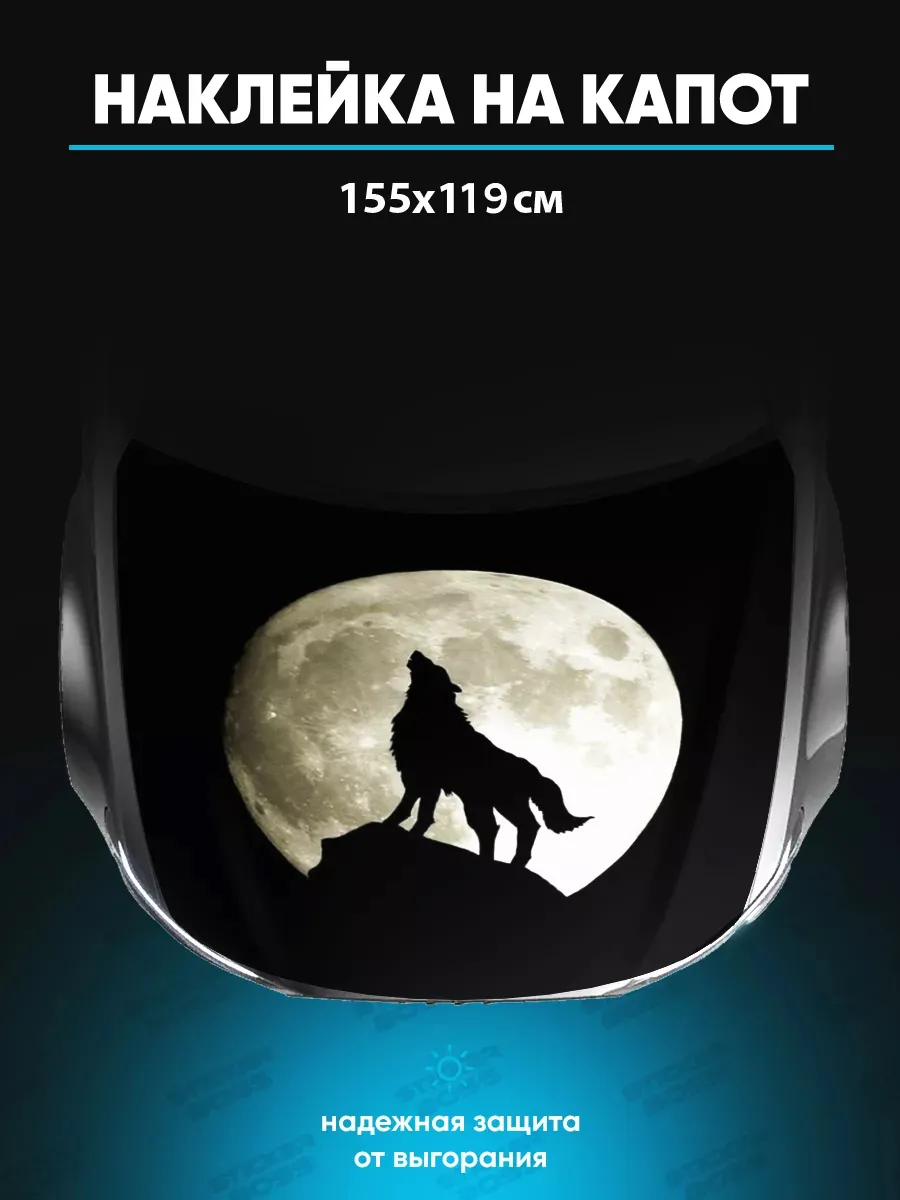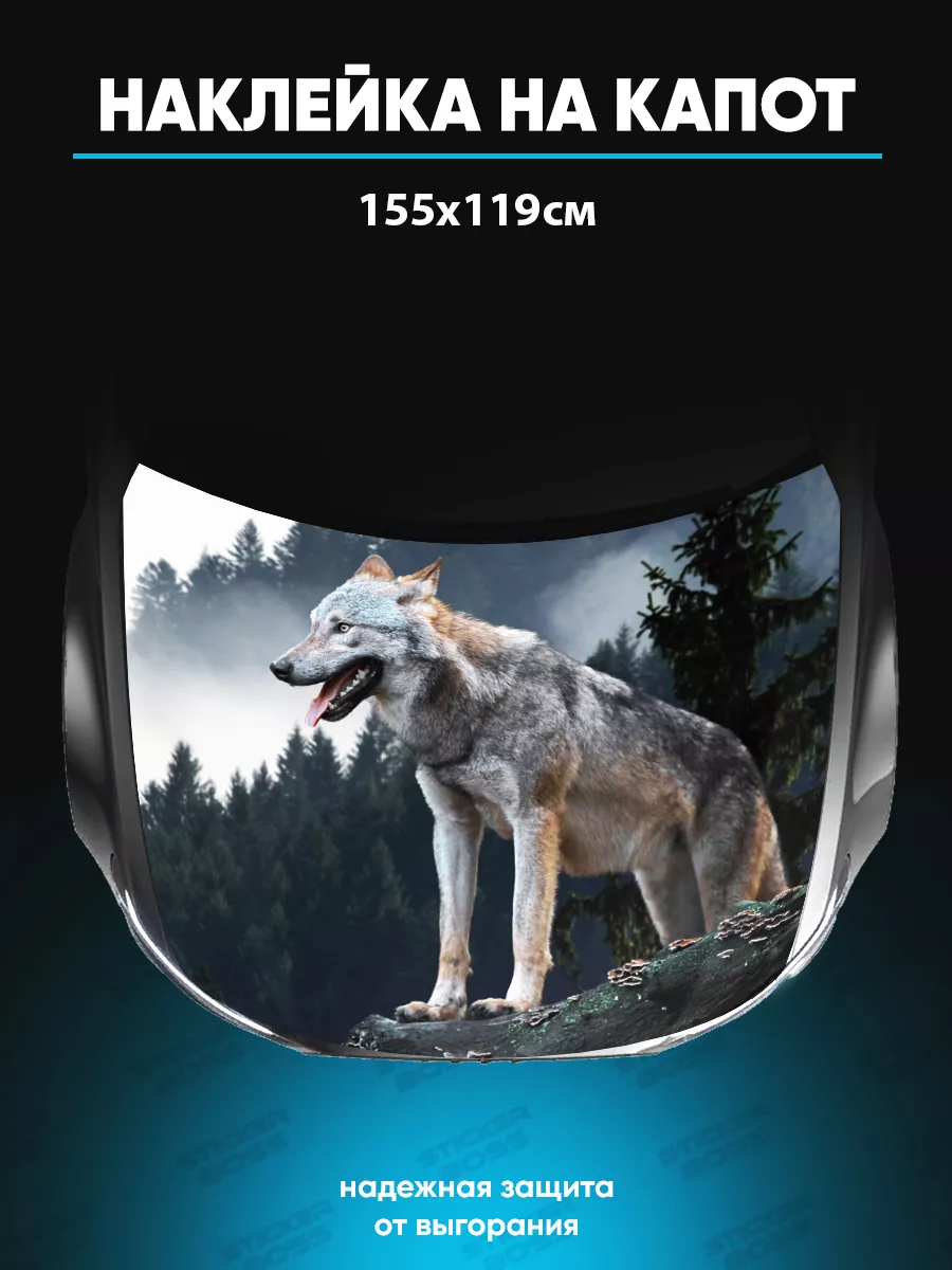 Представляем большую наклейку на капот с изображением волков, которая станет идеальным акцентом для вашего автомобиля