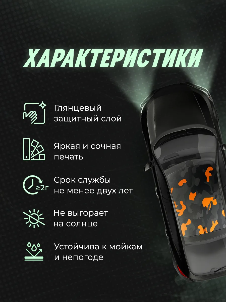 Откройте для себя уникальную коллекцию наклеек размером 200х118 см на крышу автомобиля, которая превратит ваше транспортное средство в объект восхищения и удивления, а внешний тюнинг автомобиля - в приятное и увлекательное занятие