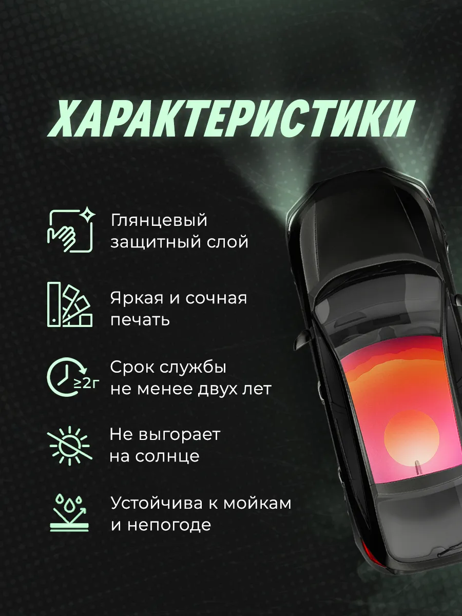 Откройте для себя уникальную коллекцию наклеек размером 200х118 см на крышу автомобиля, которая превратит ваше транспортное средство в объект восхищения и удивления, а внешний тюнинг автомобиля - в приятное и увлекательное занятие