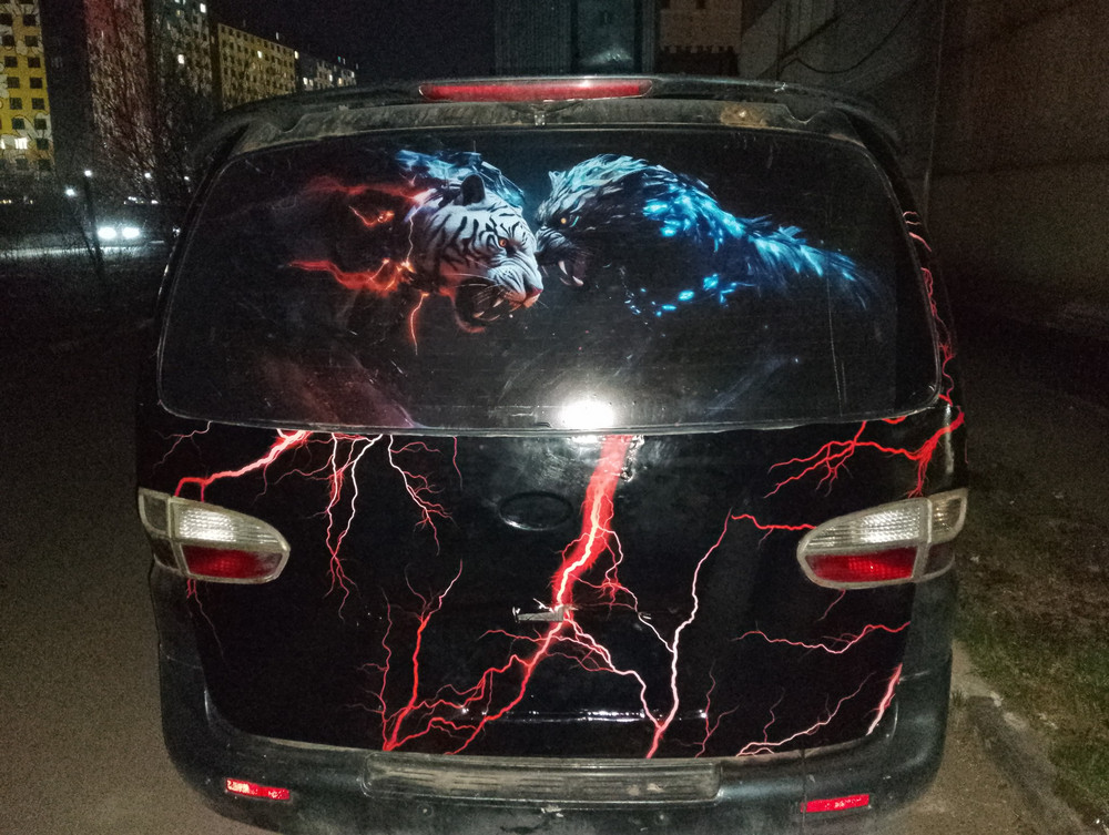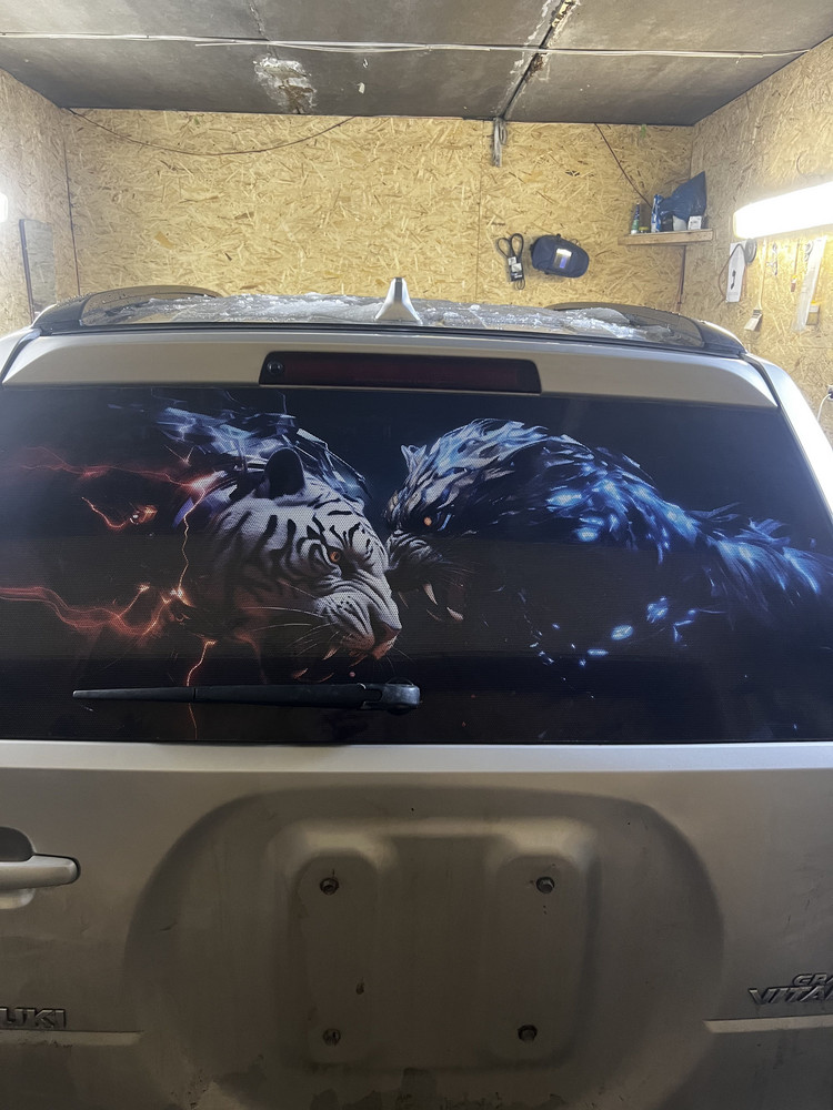 Предлагаем вашему вниманию большую декоративную автонаклейку - сетку на заднее стекло вашего авто. Размер стикера универсальный - 150х70 см, подойдет на стекла большинства популярных авто, будь то седан, хэтчбек или универсал. При необходимости можно подрезать лист под нужный размер. При изготовлении этих автонаклеек мы используем высококачественную самоклеящуюся виниловую перфорированную пленку ПВХ, которая обеспечивает надежное приклеивание к поверхности, устойчива к любому виду моек и агрессивным погодным условиям, не боится пыли и влаги, не выгорает на солнце. При желании, легко снимается, не оставляя следов. В наличии множество различных вариантов на любой вкус – в коллекции есть принты с надписями, героями известных кинофильмов, мультфильмов, компьютерных игр, динамичные изображения львов, тигров, волков, медведей, леопардов, собак, лошадей, и прочих животных, принты в стиле аниме, флаги, логотипы футбольнх клубов, горы, города и многое другое. Наклейка имеет перфорацию по всей площади, что позволяет с одной стороны украсить автомобиль и добавить ему стиля, с другой стороны скрыть от любопытных глаз ваших пассажиров, заменяя собой скучную классическую тонировку. Товар упаковывается в специальную защитную тубу, что позволяет обеспечить его сохранность во время доставки и порадовать наших покупателей яркими красками и высоким качеством наших стикеров. Они так же станут отличным подарком вашим близким на новый год, день рождения, женщинам на 8 марта и мужчинам на 23 февраля. Сделайте повседневную езду на машине ярче, вместе с продукцией бренда Stickerboss!