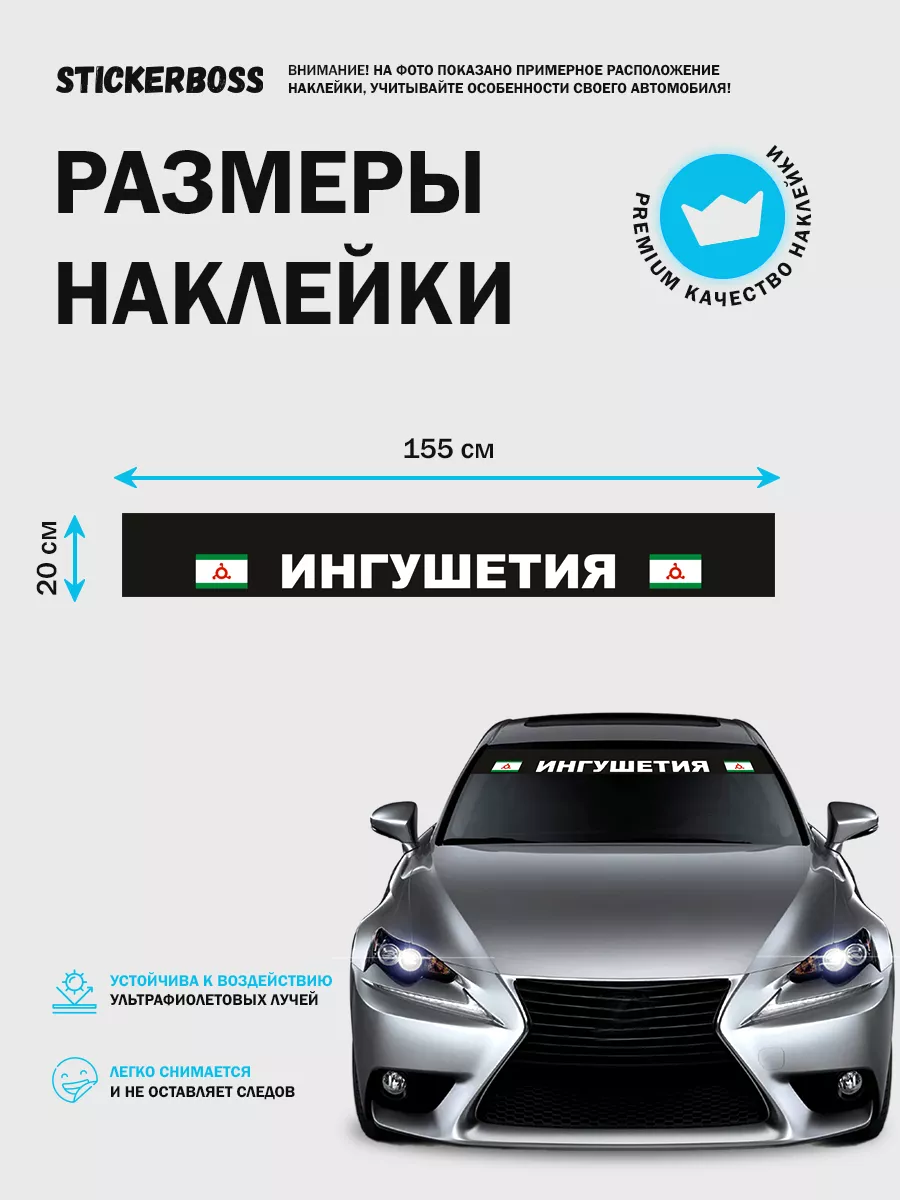 Стикеры бренда Stickerboss – отличное решение для декорирования, украшения и тюнинга вашего автомобиля. Откройте для своего автомобиля новые возможности с нашей серией солнцезащитных полос размером 150х20 см! Эти стильные и функциональные наклейки, специально разработанные для лобовых стекол, не только придают вашему авто уникальный внешний вид, но и обеспечивают дополнительную защиту от ярких солнечных лучей. Кроме выше указанных достоинств автоаксессуара, Вы подчеркнете свою любовь к любимому региону с нашими полосами с флагами и гербами различных регионов нашей страны и ближайшего зарубежья. Легко обрезаемый материал позволяет вам более точно адаптировать размеры наклейки, чтобы идеально соответствовать кривизне и особенностям лобового стекла вашего автомобиля. Самоклеющаяся основа обеспечивает простоту установки без складок, в то же время специальное покрытие устойчиво к УФ-лучам, предотвращая выцветание и сохраняя целостность цвета с течением времени. С нашими солнцезащитными полосами вы не только улучшите внешний вид своего автомобиля, но и повысите свой комфорт и безопасность за рулём, сокращая дискомфорт и отвлечение водителя от яркого света.
