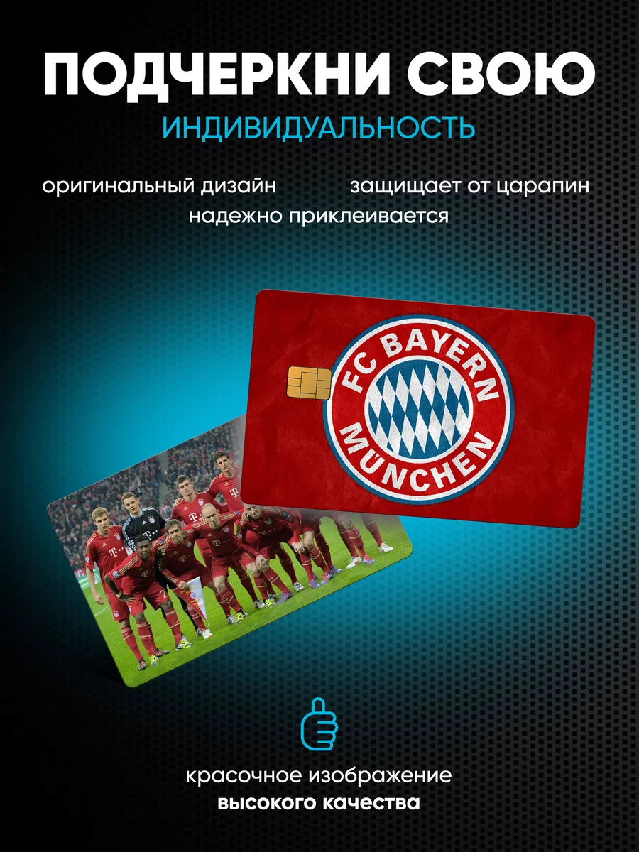 Этот комплект наклеек предназначен для стилизации банковской карты без нарушения функциональности чипа. Два элемента: лицевой с прорезью под чип и полностью закрывающая тыльная сторона обеспечивают защиту от износа и царапин, сохраняя удобство использования карты. Дизайн выполнен в футбольной тематике с элементами логотипов и флагов известных зарубежных клубов, включая FC Bayern. Печать высокого качества на прочной самоклеящейся виниловой пленке ПВХ Oracal обеспечивает яркие цвета и четкость деталей. Нанесение простое, удаление без следов клея, что делает комплект удобным для повседневного использования.