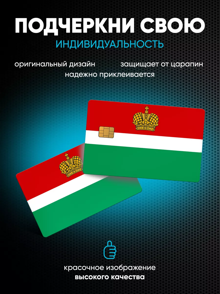 Представляем вашему вниманию уникальный комплект наклеек для обеих сторон банковской карты, выполненный в стиле национальных флагов и гербов, который не только защитит ваш платёжный инструмент, но и придаст ему неповторимый внешний вид