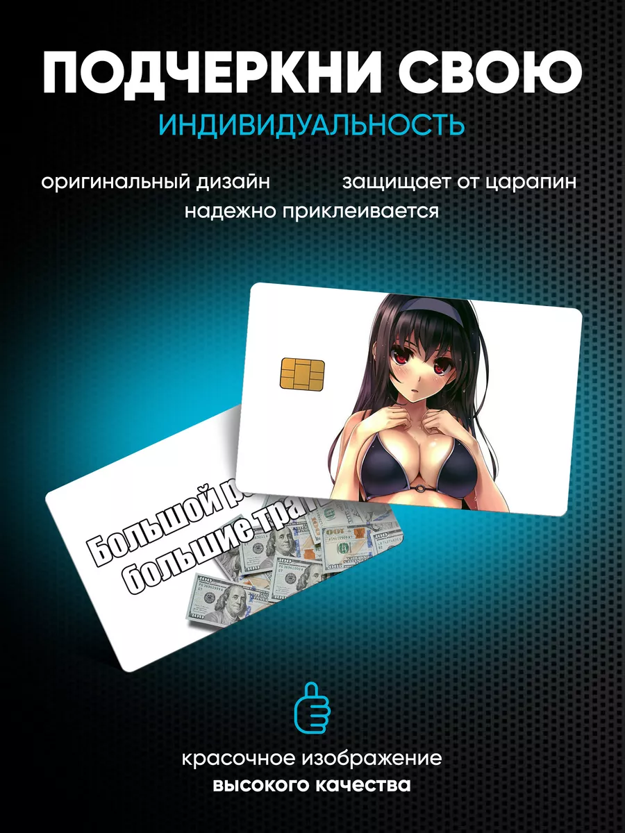 Уникальный комплект наклеек для банковской карты в стиле аниме состоит из двух штучек, наносится на обе стороны и обеспечивает защиту поверхности от царапин и износа, сохраняя возможность бесконтактной оплаты. На лицевой стороне предусмотрена прорезь под чип, на задней — шуточные надписи в духе Stickerboss. Используемый материал — самоклеящаяся виниловая пленка ПВХ Oracal, гарантирующая долговечность и яркость изображения. Наклейки легко наносятся и удаляются без следов клея, что позволяет менять дизайн по желанию и настроению.