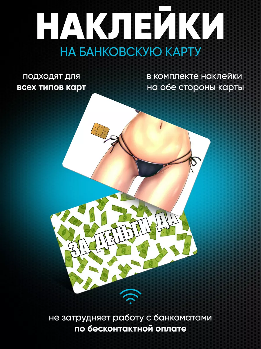 Этот комплект наклеек для банковской карты создаёт оригинальный дизайн и надёжную защиту пластика. Наклейки выполнены из прочной виниловой пленки ПВХ Oracal и рассчитаны на долговременное яркое изображение. На лицевой стороне предусмотрена прорезь под чип, что сохраняет функциональность карты.