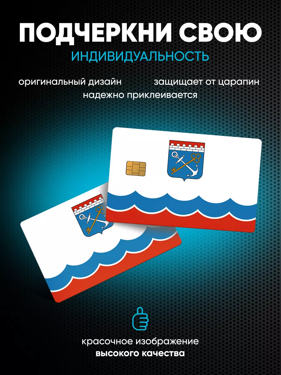 Наклейки на банковскую карту Ленинградская область виниловые 2 шт для обеих сторон. Комплект выполнен в стиле национальных флагов и гербов и обеспечивает защиту поверхности карты от царапин и износа. Наклейки совместимы с бесконтактными платежами и имеют прорезь под чип на лицевой стороне. Клей разработан так, чтобы наклеивать и удалять без остатка клея, что позволяет менять дизайн по желанию. Изготовлены на прочном виниле Oracal, что обеспечивает долговечность и яркость изображения.