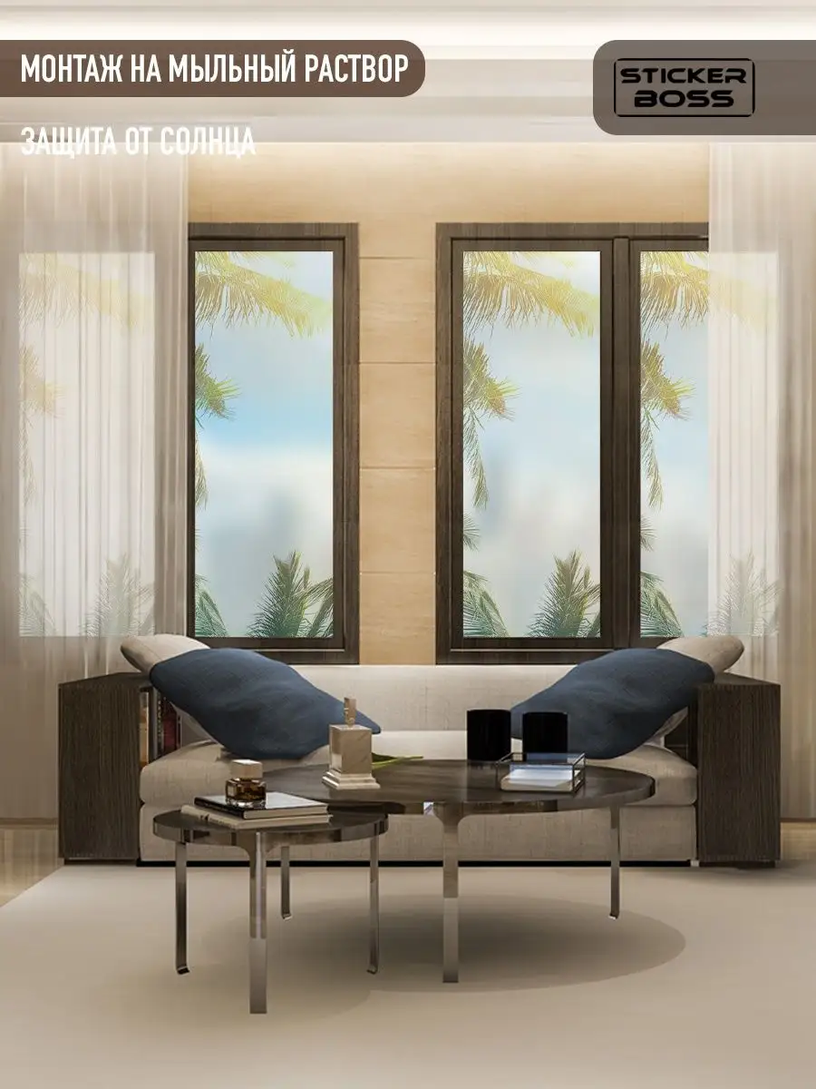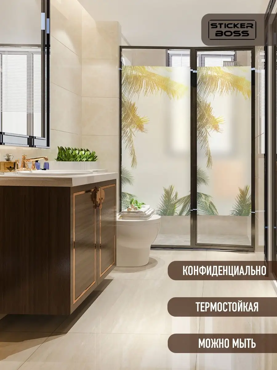 Наклейка легко наносится на чистое стекло: снимите защитную пленку, аккуратно приклейте по центру и расправьте шпателем от середины к краям. Пленка снимается без повреждений поверхности, что позволяет менять декор при необходимости.