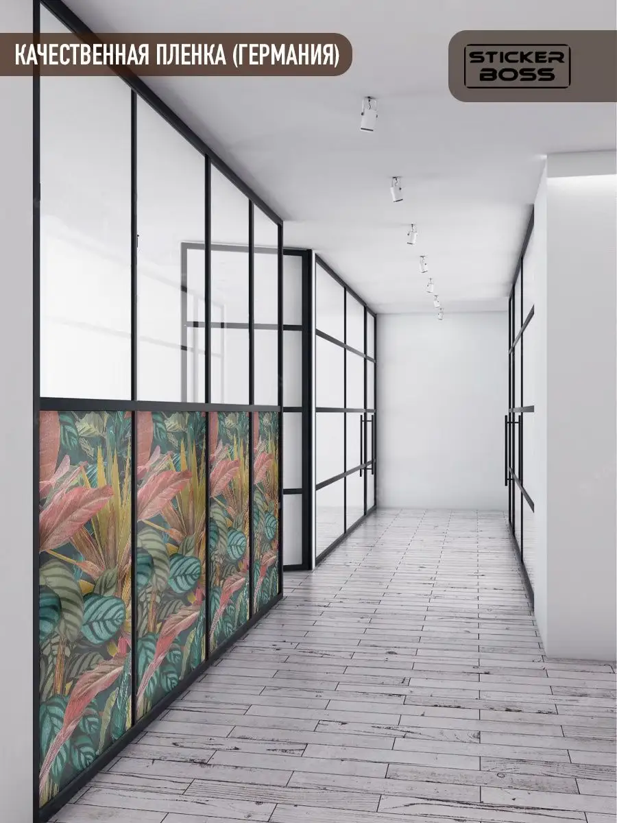 Эта наклейка превращает стекло в стильный декоративный элемент интерьера, сочетая практичность и эстетическую привлекательность. Пленка обеспечивает приватность и может служить акцентом в любом помещении.