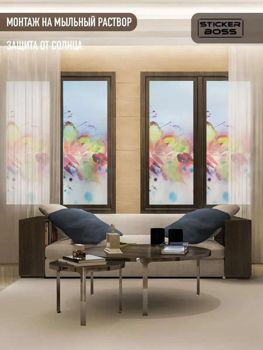 Подходит для окон и интерьеров дома и офиса; используется как декоративная наклейка на стекло, для создания индивидуального стиля и приватности. Наклейки на стекло легко устанавливаются и снимаются, что делает их подходящими как для временного, так и для постоянного декора.