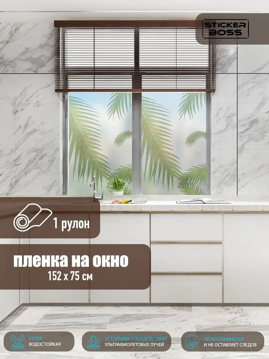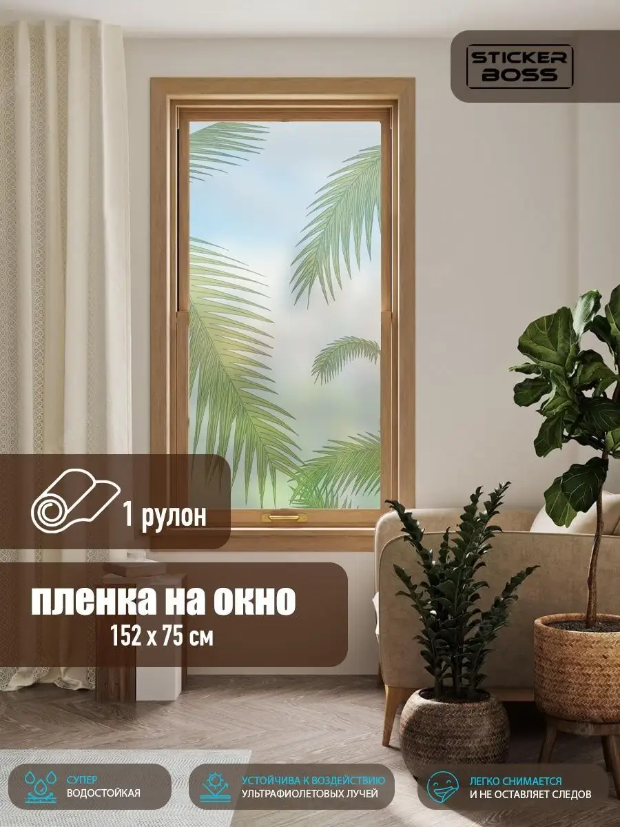 Эта интерьерная наклейка-пленка на окно позволяет быстро преобразить помещение без ремонта. Матовая 3D-пленка с рисунком пальмы создаёт уют, зрительно увеличивает пространство и обеспечивает приватность.