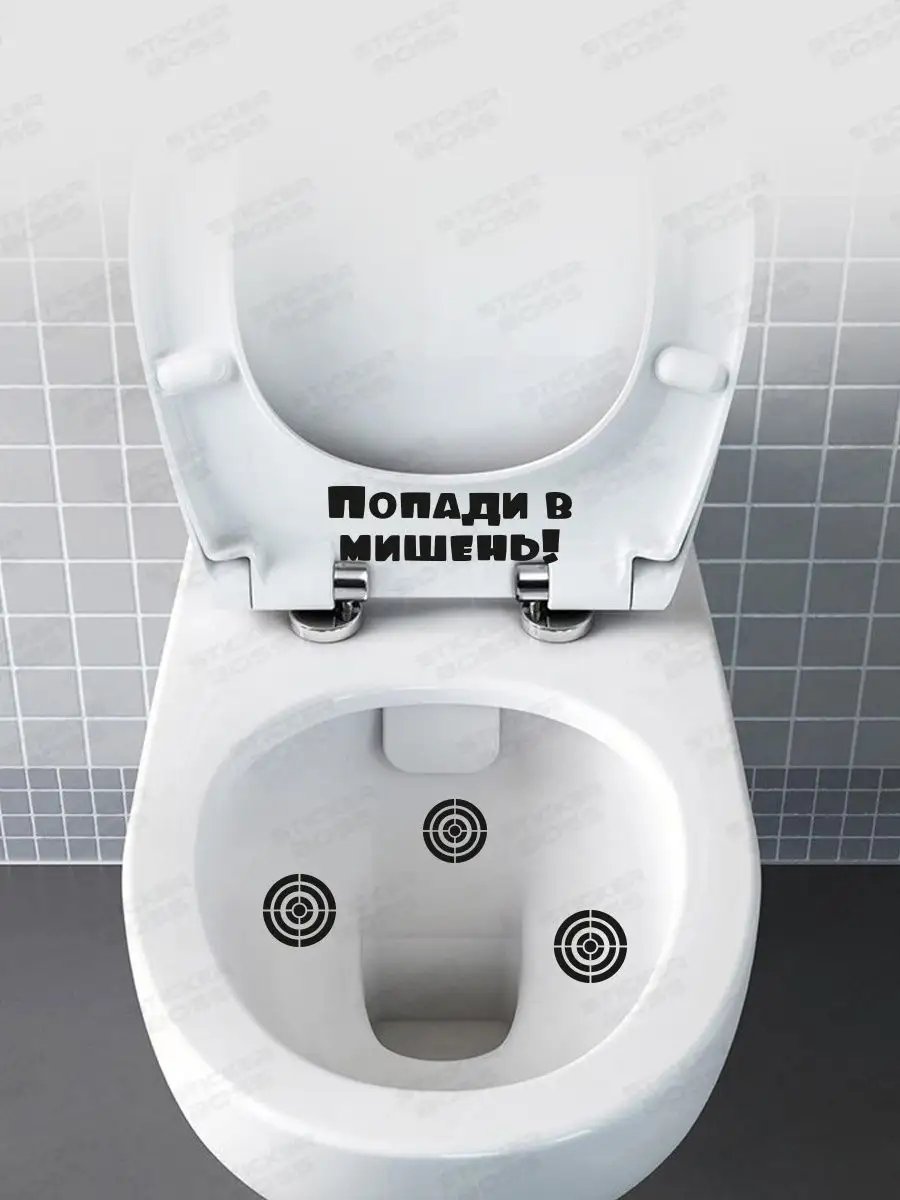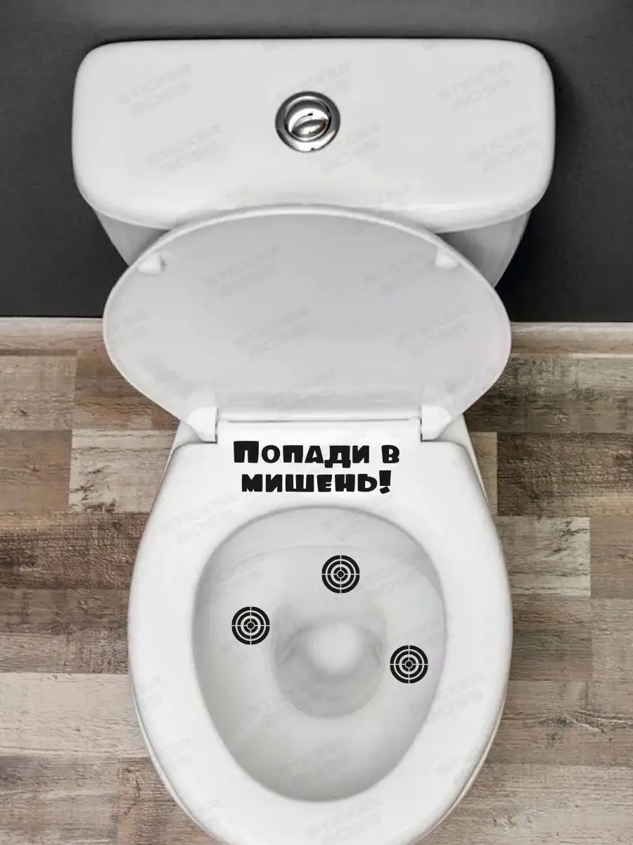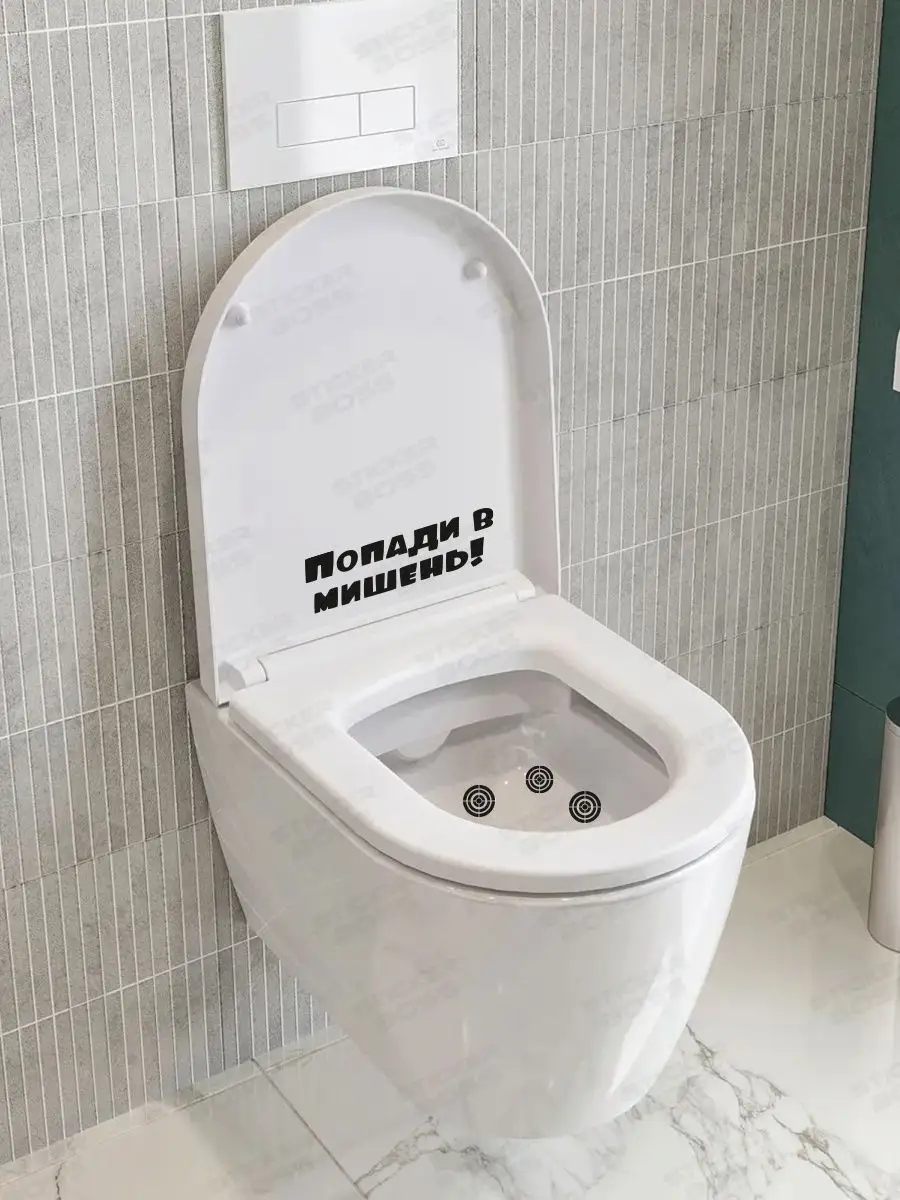 Интерьерная наклейка на унитаз попади в мишень — простое и весёлое решение для обновления вашего туалета. Наклейка превращает обычное помещение в игровую зону, где малыши учатся цели и самостоятельности, а родители получают повод для улыбки.