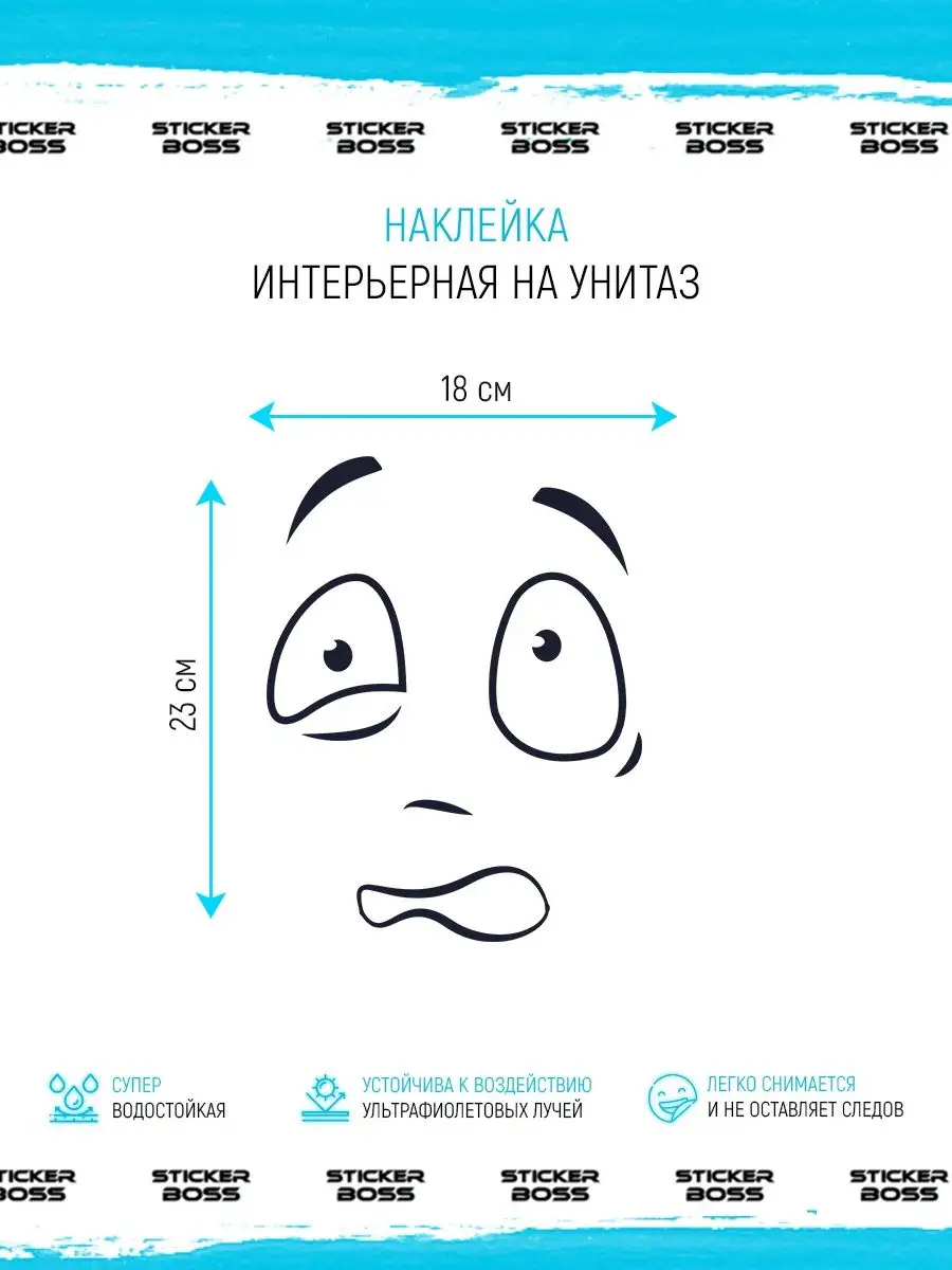 Эта наклейка предназначена для декора туалета и создания легкой юмористической атмосферы в помещении. Наклейка изготовлена из влагостойкой виниловой пленки и имеет черный цвет, что обеспечивает стильный вид и долговечность. Рисунок рожицы смайлик выражение волнения выполнен без запаха и подходит для декорирования унитаза и соседних гладких поверхностей. Производство России, товар от Stickerboss.