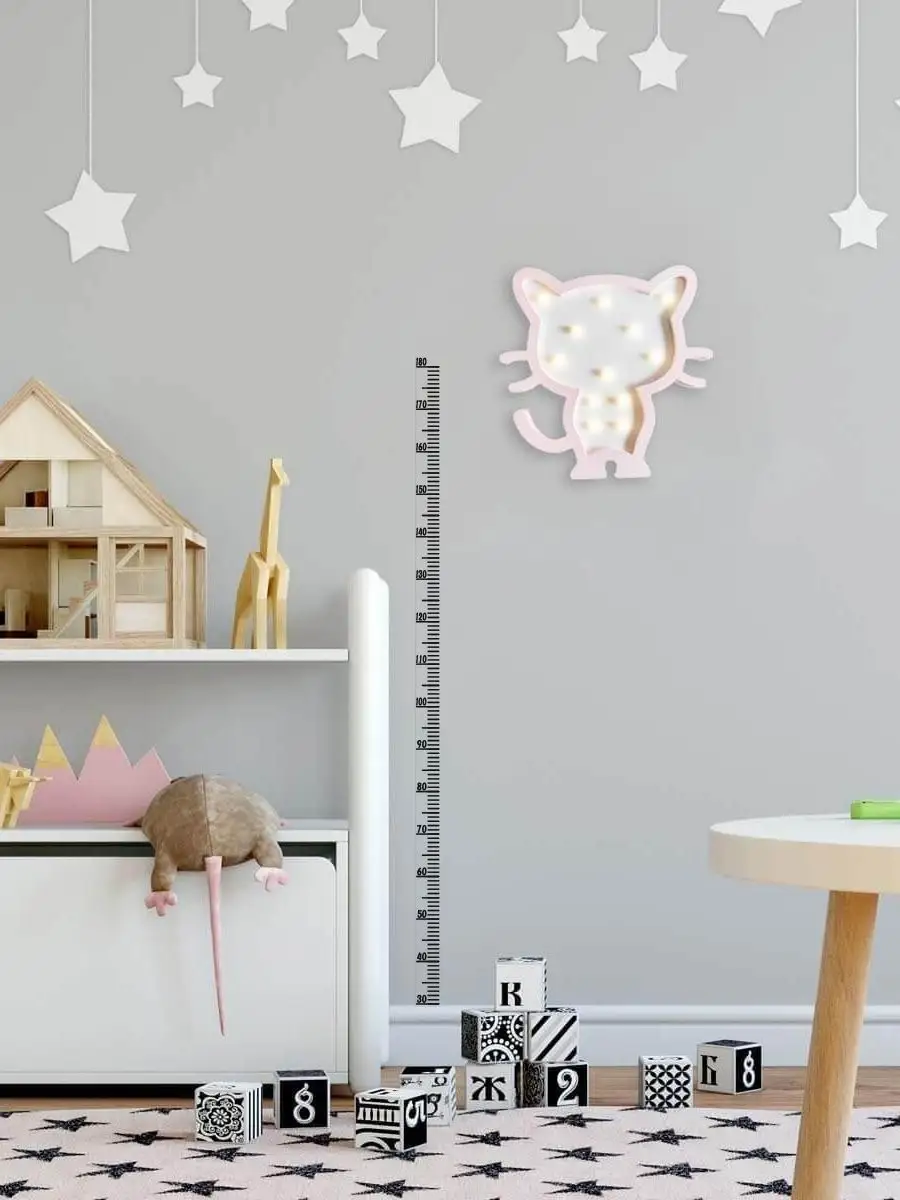 Эта наклейка-ростомер превращает детскую комнату в функциональное пространство, где рост малыша можно отслеживать каждый год. Наклейка выполнена из самоклеющейся плёнки и имеет чёрный цвет, что обеспечивает стильный минималистичный вид. Диапазон измерений 20–180 см позволяет использовать её на протяжении многих лет, начиная с младенческого возраста. Шкала по сантиметрам читается легко, дети могут отмечать свои достижения, что стимулирует интерес к числам и росту. Легко клеится на гладкие поверхности стен и не требует дополнительных материалов; крепление надёжное за счёт крепкого клеящего слоя.