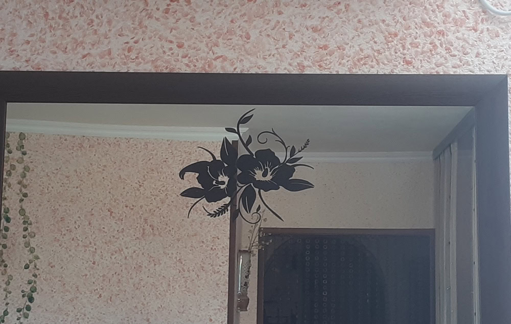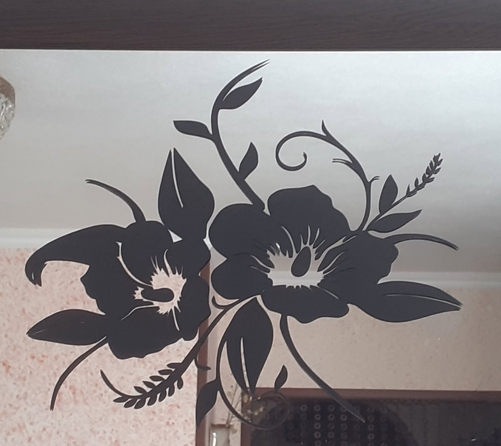 Эта наклейка предназначена для декоративного оформления интерьера. Цветочный рисунок добавляет света и естественности в комнату, а зеркальная поверхность становится акцентом. Наклейка изготовлена из матовой пленки ПВХ Oracal и обладает стойкостью к мытью и влаге, что обеспечивает длительный комфорт использования.