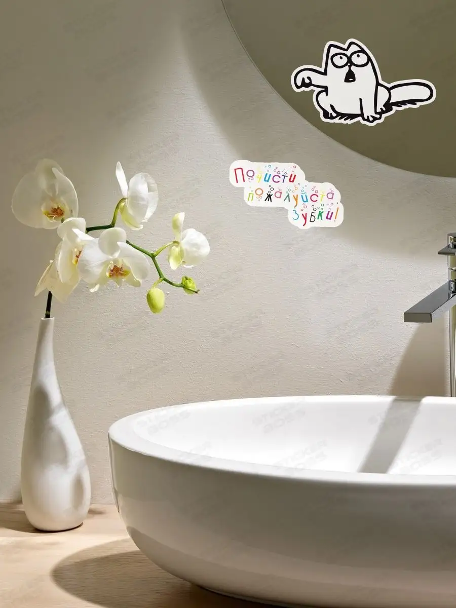 Эта наклейка из детской коллекции Stickerboss предназначена для украшения интерьеров и детских зон. Мотив кота с пальцем и призыв почистить зубы служит милым напоминанием для ребенка и украшает дом, кухню и ванную.