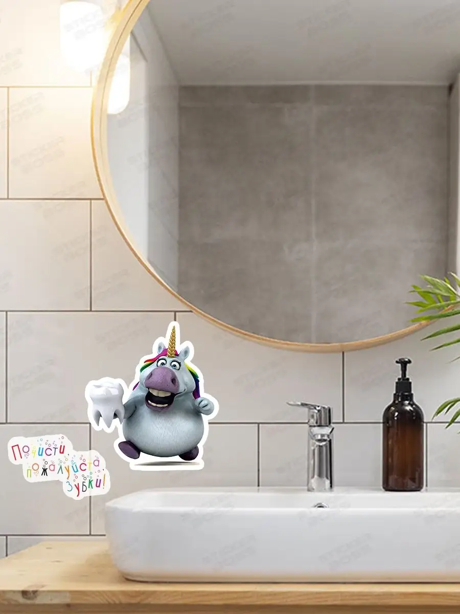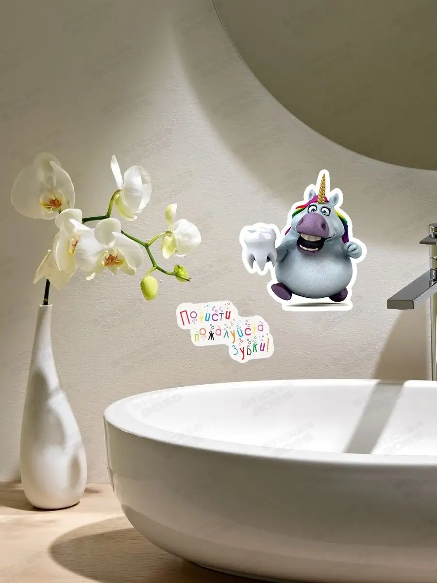Эта наклейка создаёт яркий акцент в ванной и поддерживает ребенка в формировании полезной привычки — чистить зубы каждый день. Наклейка выполнена из безопасной самоклеящейся виниловой пленки и легко адаптируется к интерьеру любой ванной и детской комнаты.