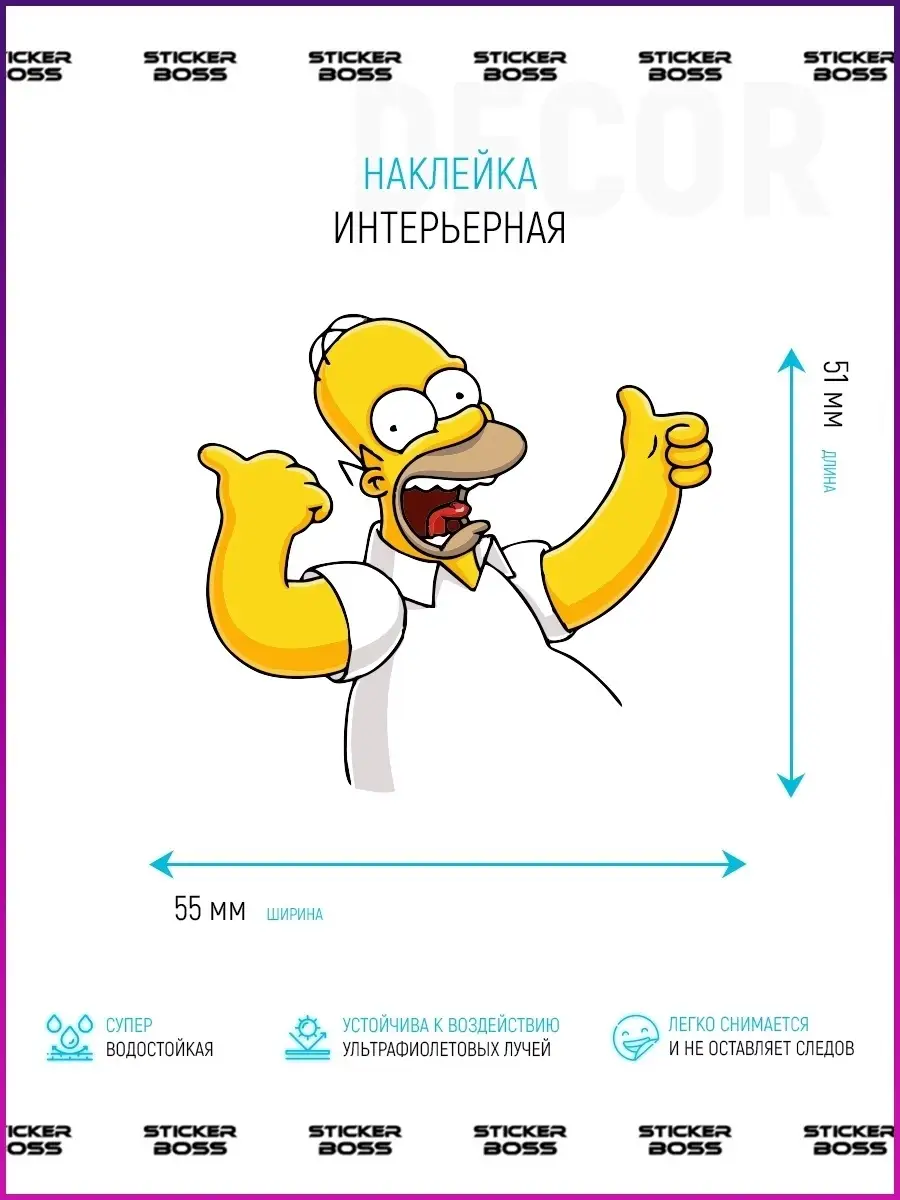 Дизайн с персонажем Гомер Симпсон; материал — виниловая пленка ПВХ Oracal; наклейка безопасна, влагостойкая и без запаха липкого слоя клея; монтаж на монтажной пленке; легко снимается без следов при демонтаже.
