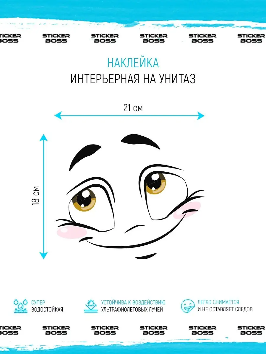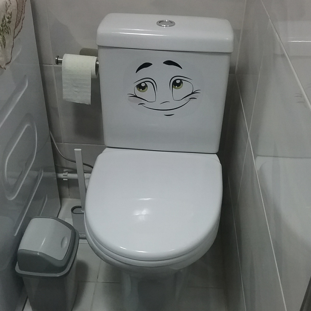 Наклейка интерьерная на унитаз рожица добряк представляет собой декоративное решение для ванной комнаты, которое позволяет быстро добавить настроение. Наклейка изготовлена из водостойкой пленки ПВХ Oracal и выдерживает влажную среду.
