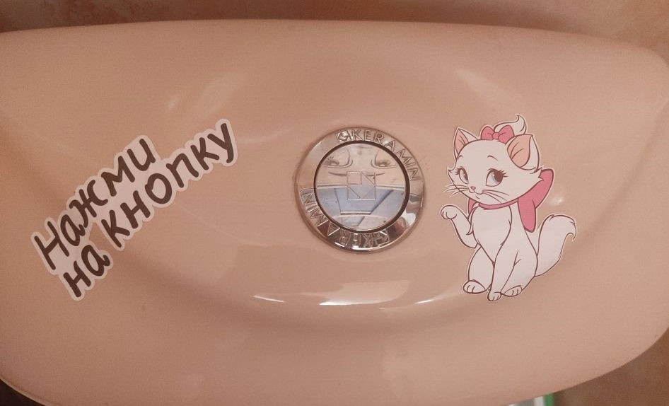 Наклейка легко наносится на чистый сухой бачок унитаза. Поверхность должна быть обезжирена, поверхность должна быть ровной, чтобы устранить пузырьки воздуха во время нанесения. Убедитесь, что наклейка полностью высохла после крепления.