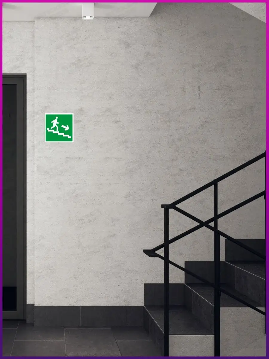 Размещается на стенах в местах скопления людей, подчеркивая выходы и маршруты эвакуации.