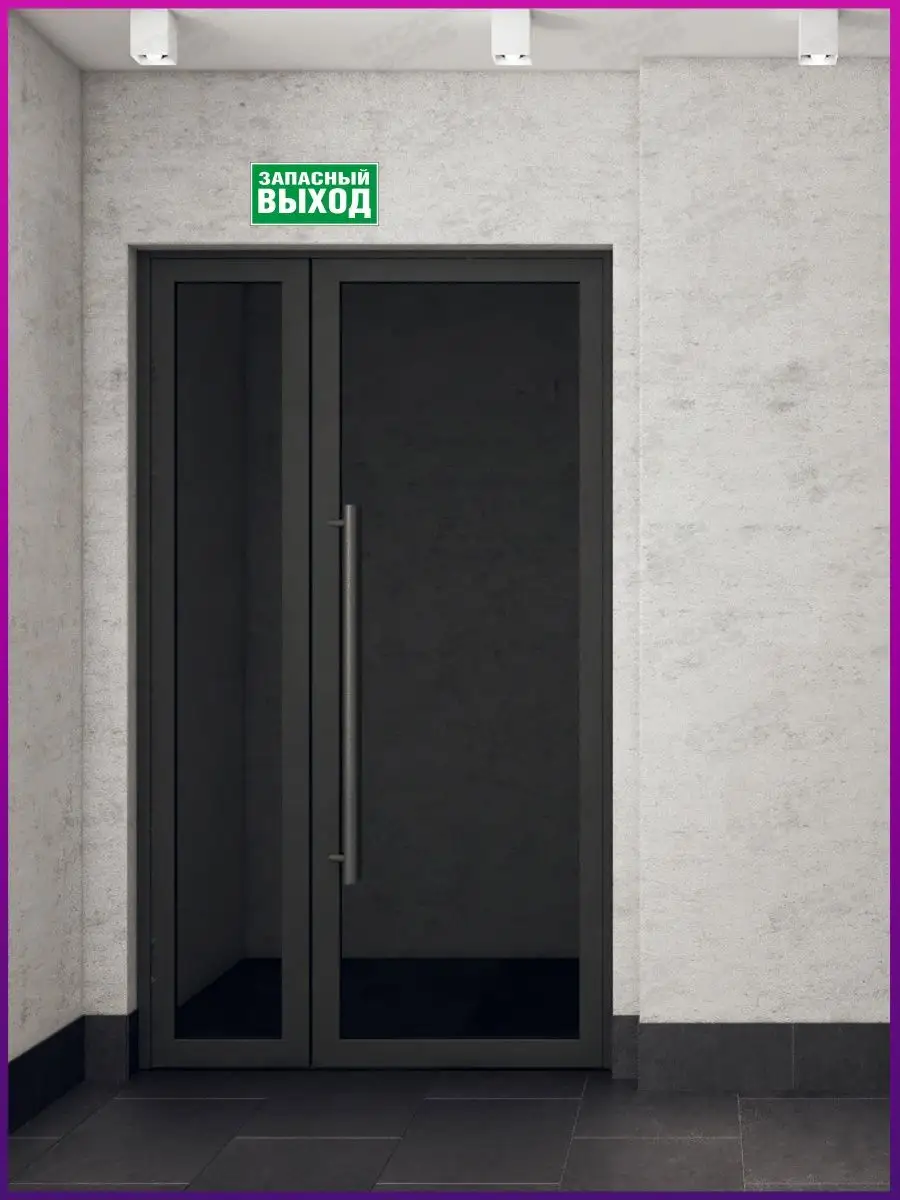 Наклейка обеспечивает визуальную идентификацию выходов и способствует соблюдению требований по безопасности в общественных местах и офисах.