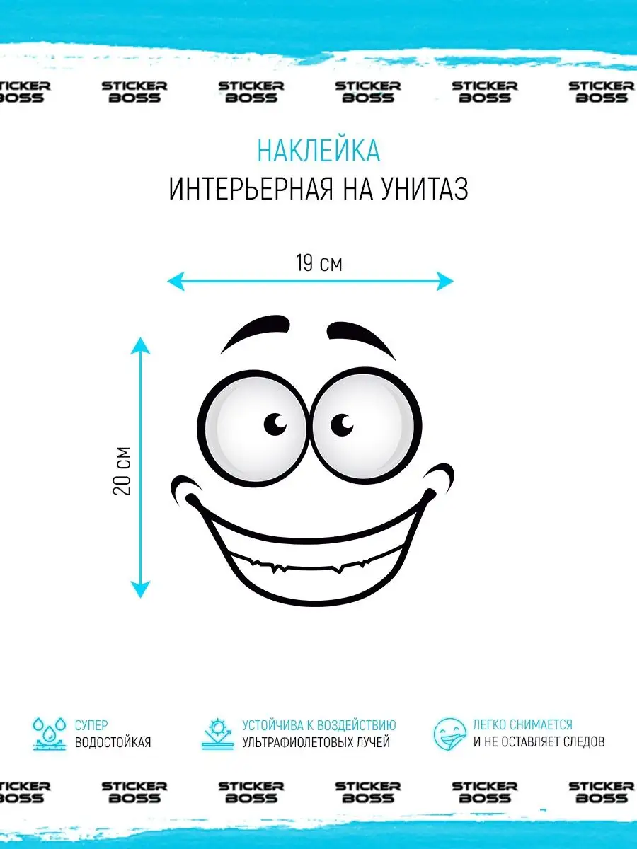 Стикеры Stickerboss для бачка унитаза с милыми лицами позволяют украсить туалет и создать легкое настроение в помещении. Наклейка изготовлена из водостойкой пленки Oracal матовая без фона и рассчитана на влажную среду ванной комнаты.