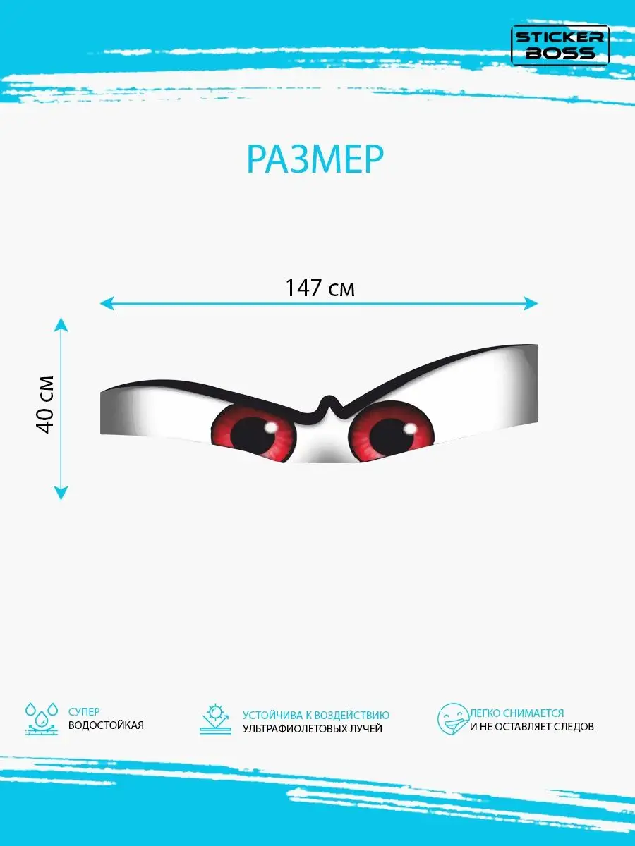 Эта наклейка выполнена в стиле весёлых глаз и предназначена для украшения и тюнинга автомобиля. Прозрачная сетчатая основа сохраняет хороший обзор и не мешает вождению, а яркие красные глаза привносят игривый характер в каждую поездку, особенно для поклонников мультфильма Тачки.