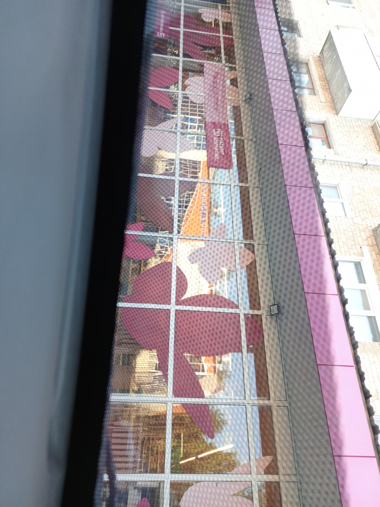 Особенность наклейки — прозрачная сетка, благодаря которой снаружи виден не только внешний рисунок, но и окружающее пространство.