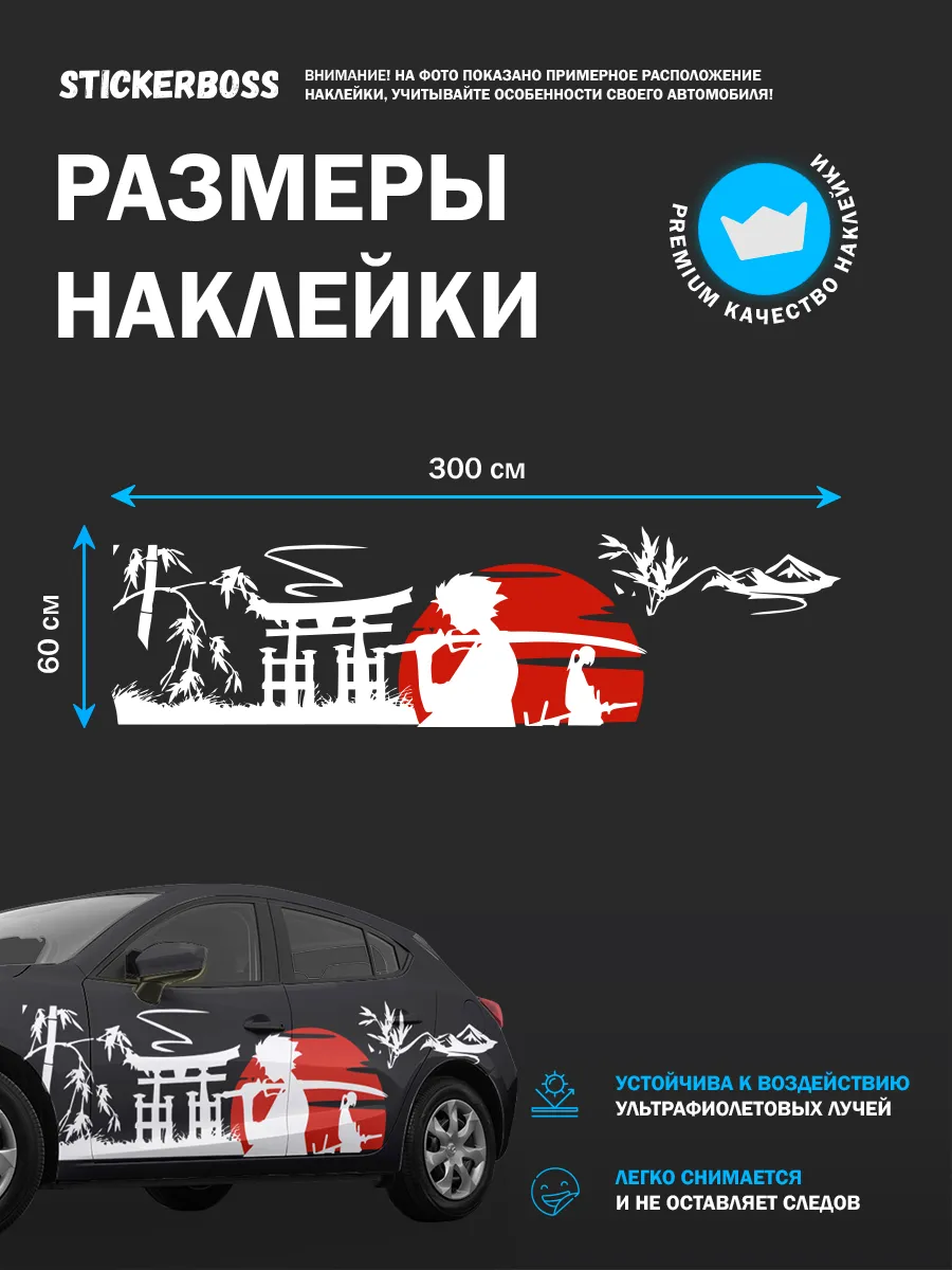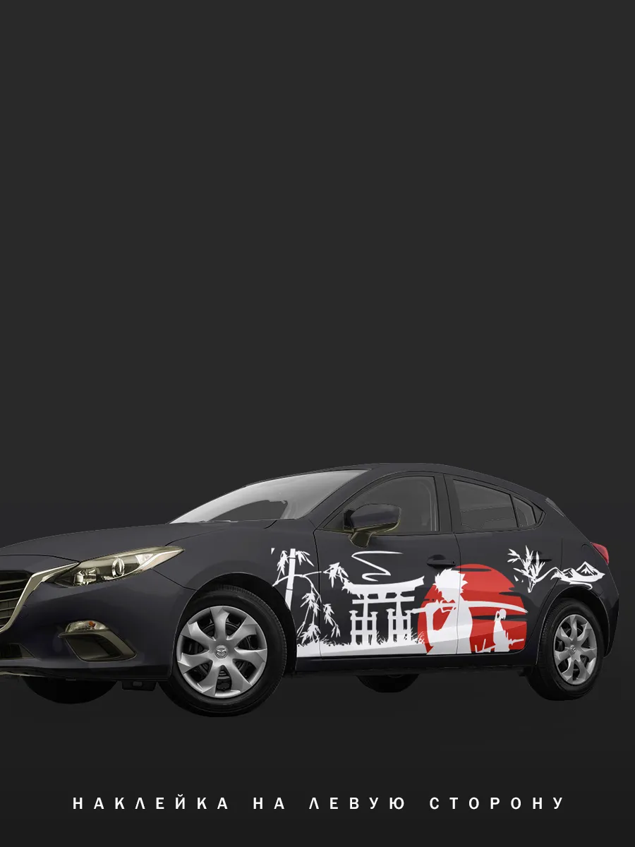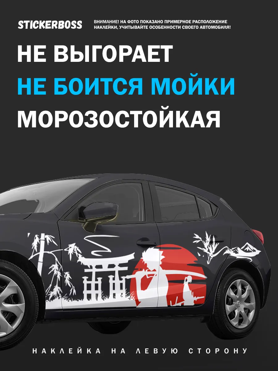 Рекомендуется для левого борта автомобиля. Наклейка может покрыть двери и крылья, создавая единый стиль кузова.