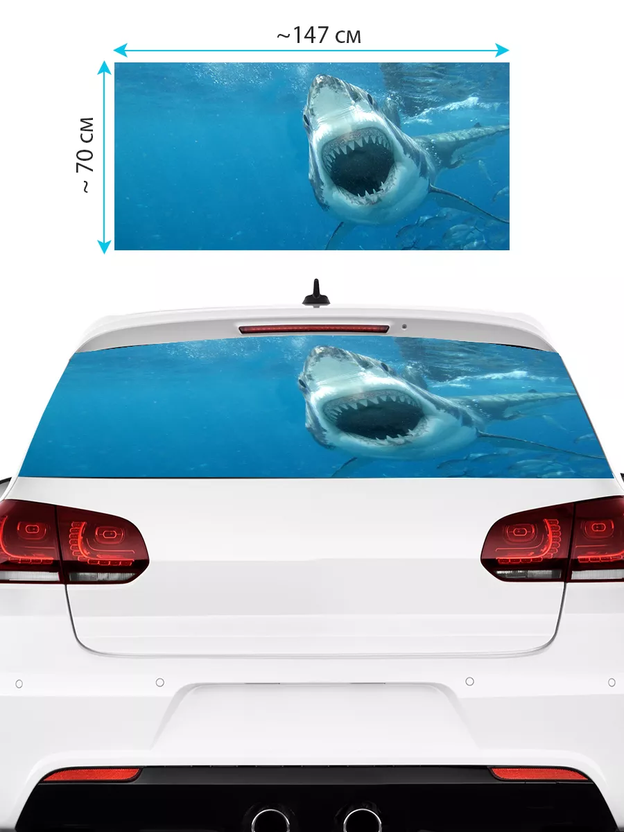 Преобразите внешний вид вашего авто с помощью большой наклейки – сетки на заднее стекло с акулой
