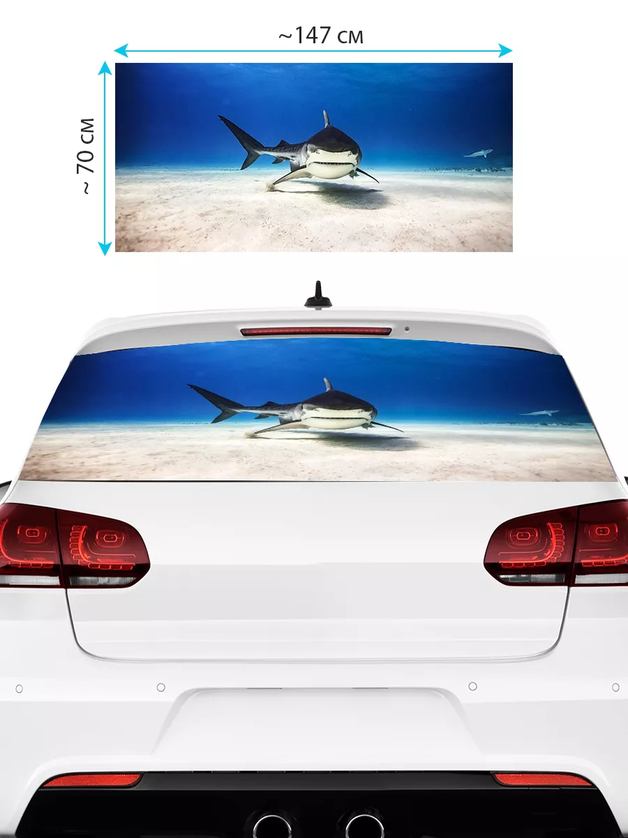 Преобразите внешний вид вашего авто с помощью большой наклейки – сетки на заднее стекло с акулой