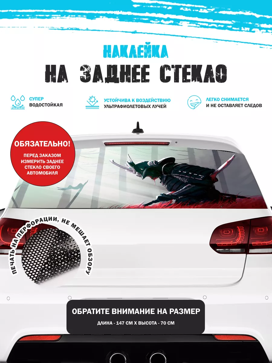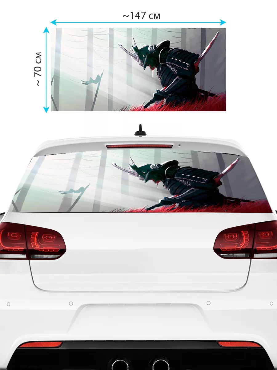 Преобразите внешний вид вашего автомобиля с помощью большой наклейки - сетки на заднее стекло с изображением самурая! Этот воин в японском стиле добавит вашему транспортному средству уникальности и выразительности