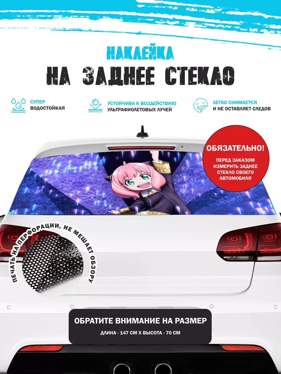 Декоративная наклейка на заднее стекло автомобиля представляет собой сетку из самоклеящейся виниловой пленки ПВХ. За счёт перфорации она украшает стекло и одновременно обеспечивает приватность салона. Размер 150х70 см универсален и подходит для большинства седанов, хэтчбеков и универсалов. В коллекции встречаются дизайны с аниме‑рисунками, животными и городами.